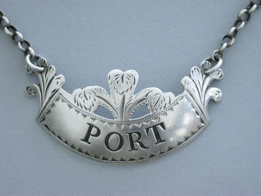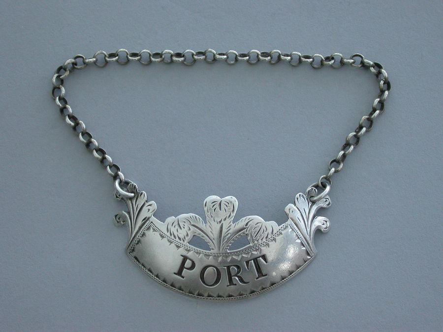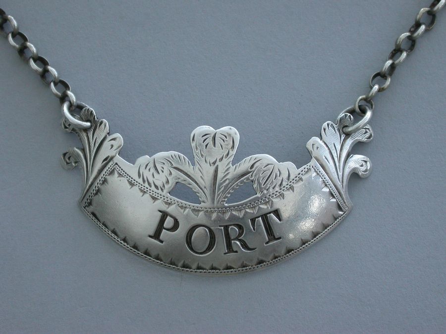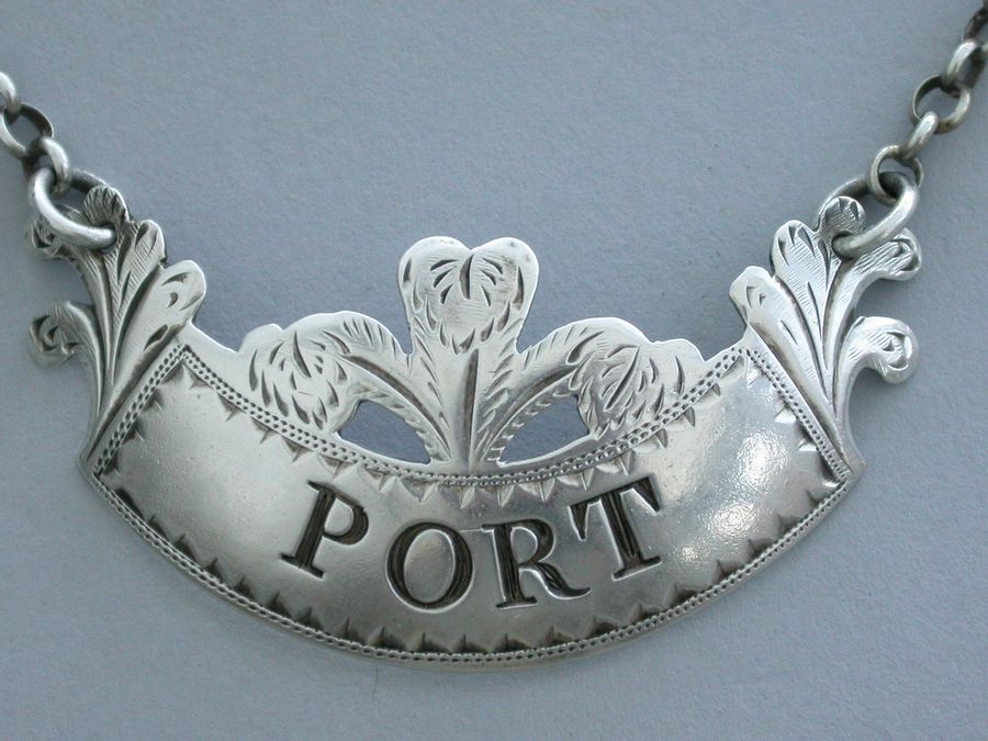 George III Silver ""Prince of Wales Feathers"" Wine Label 'Port'