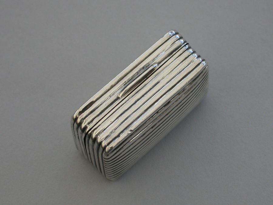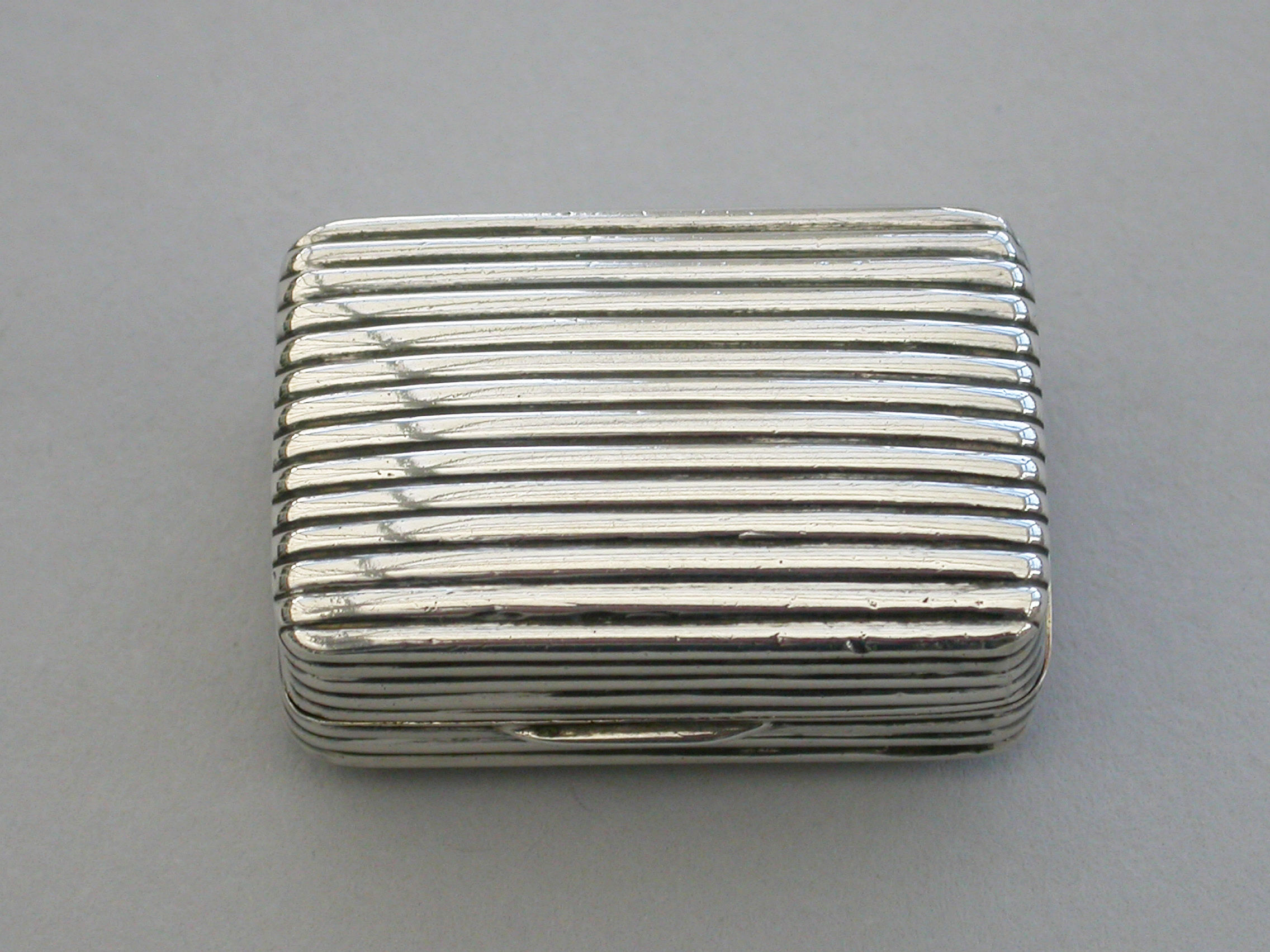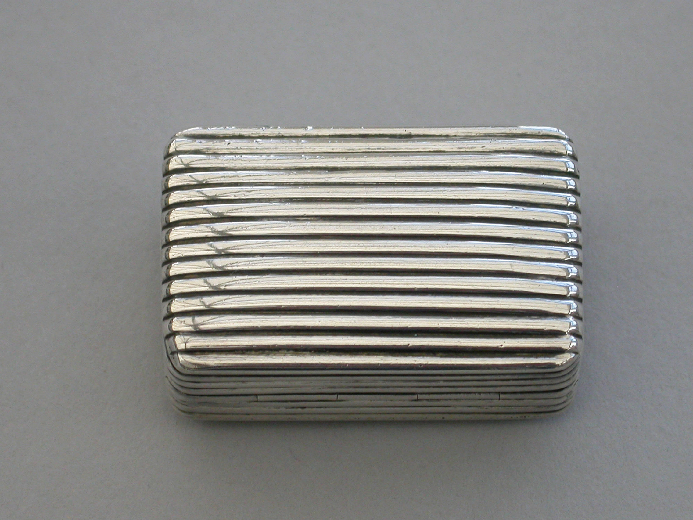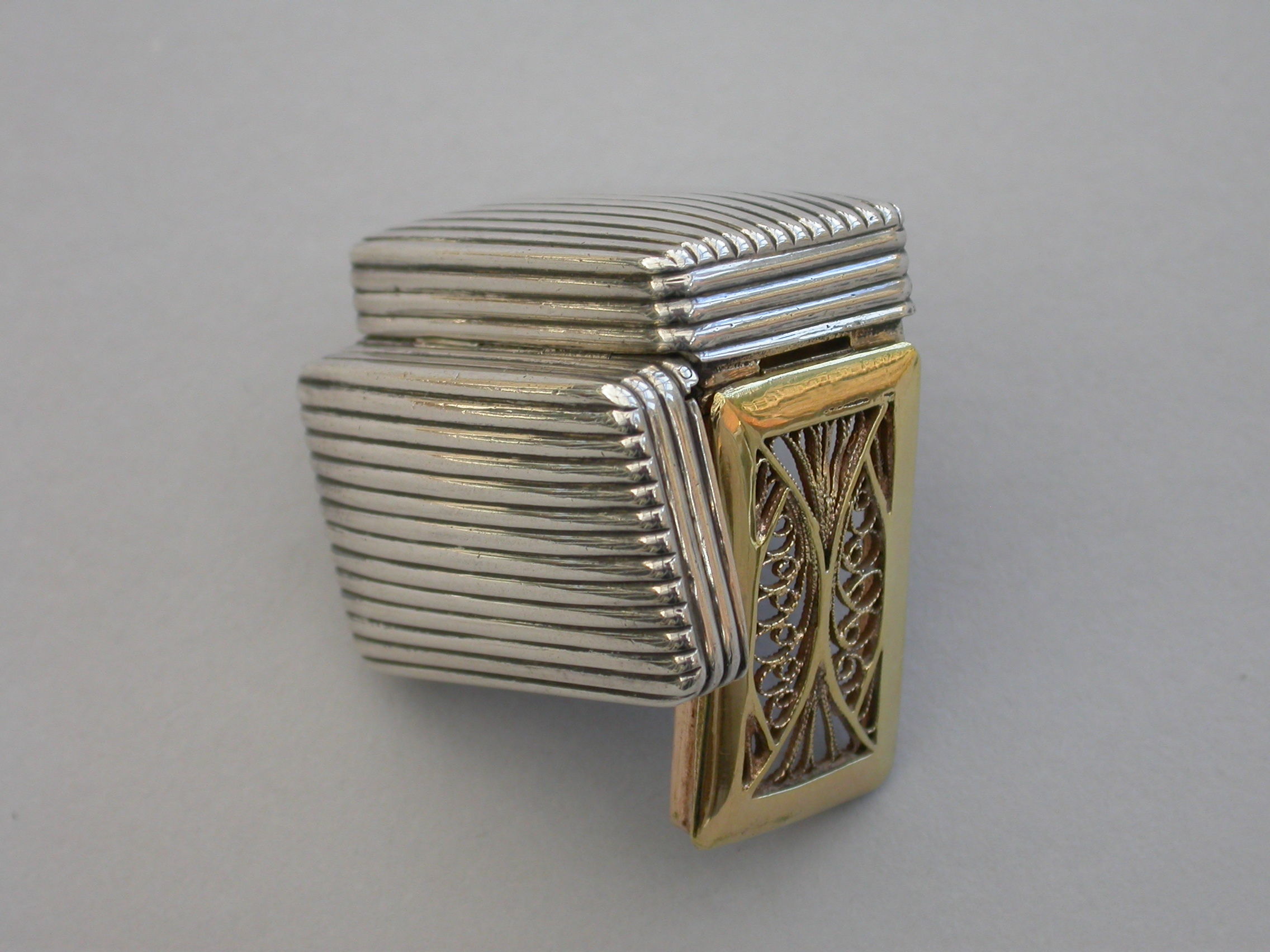 A good George III silver Vinaigrette of deep reeded rectangular form, the silver gilt filigree grille of unusual segmented design formed horizontally.