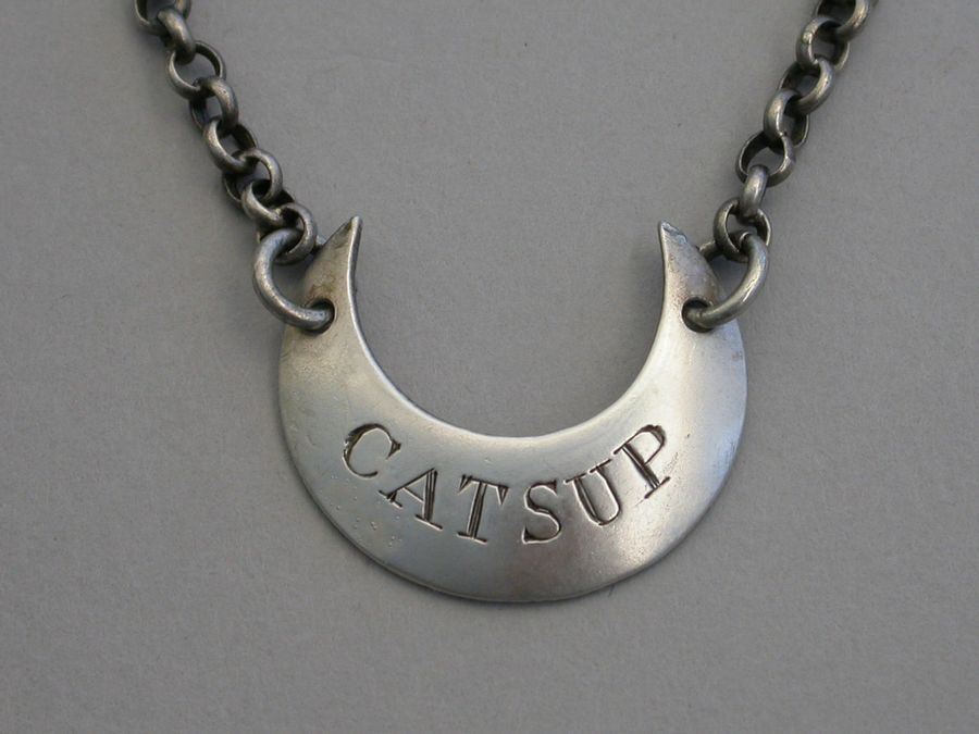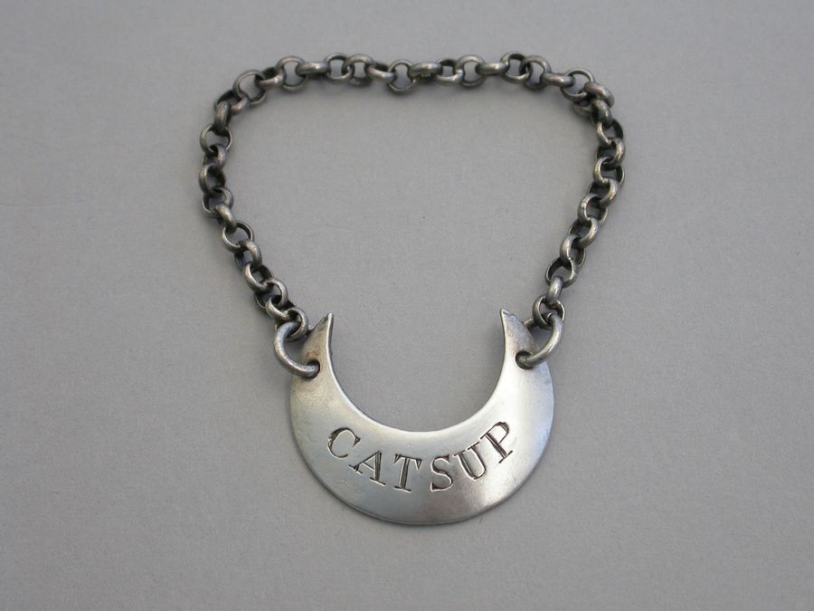 A rare George III Silver Sauce Label of plain crescent form, incised for CATSUP.