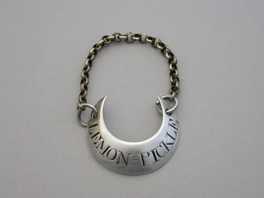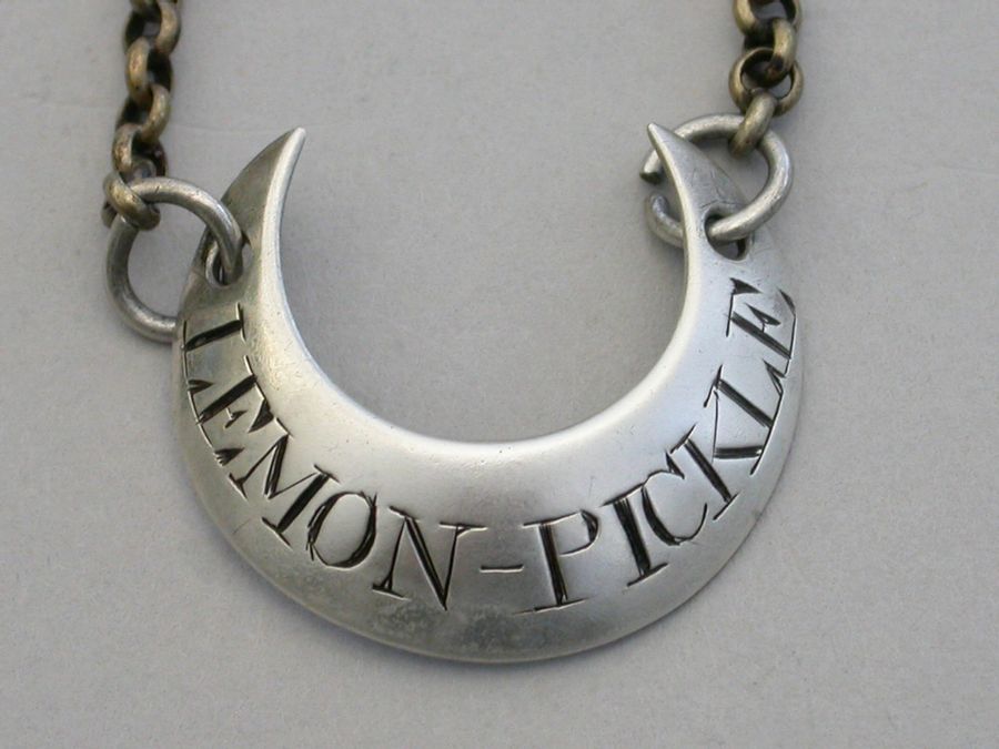A rare George III silver Sauce Label of plain crescent form, incised for LEMON-PICKLE.