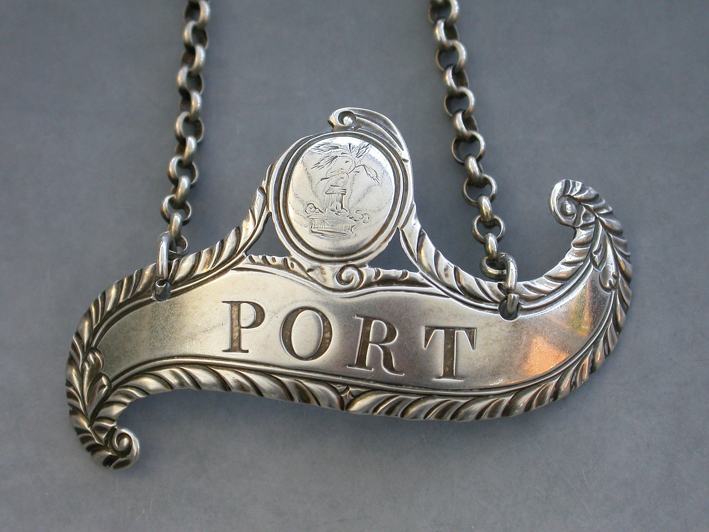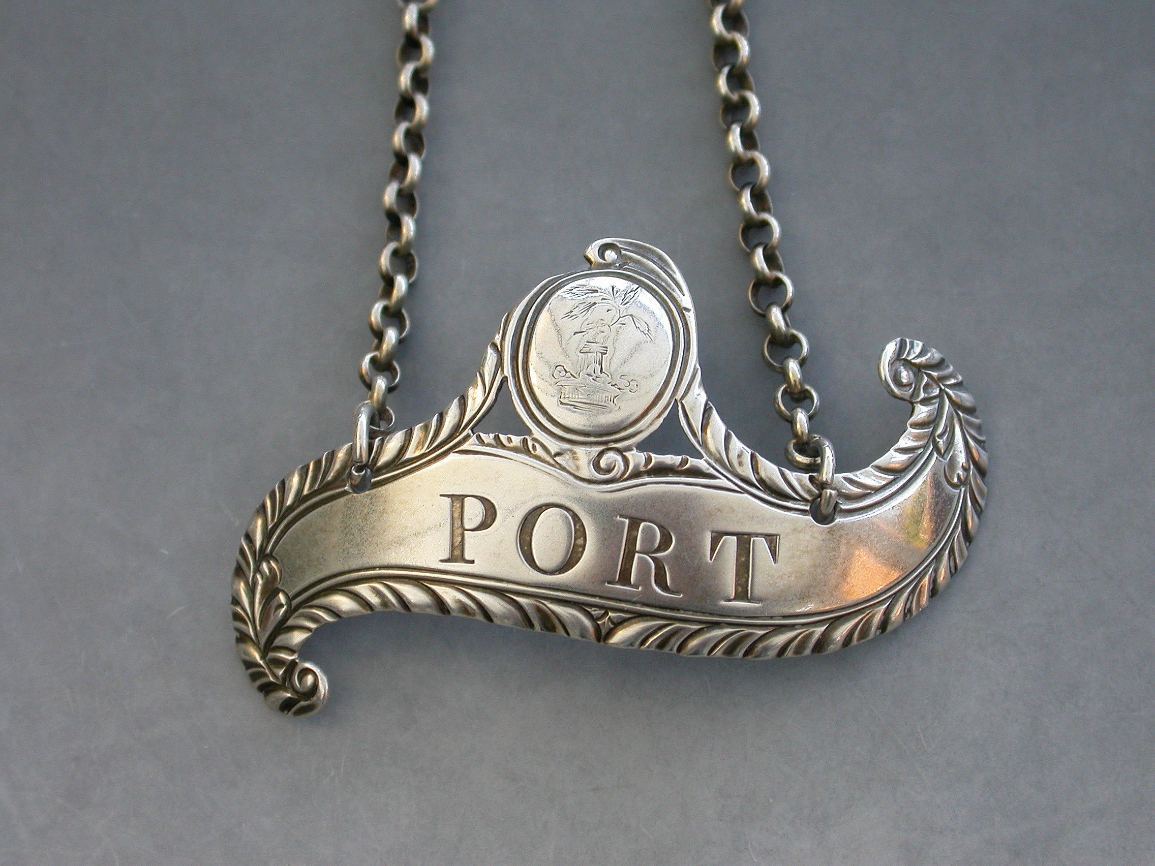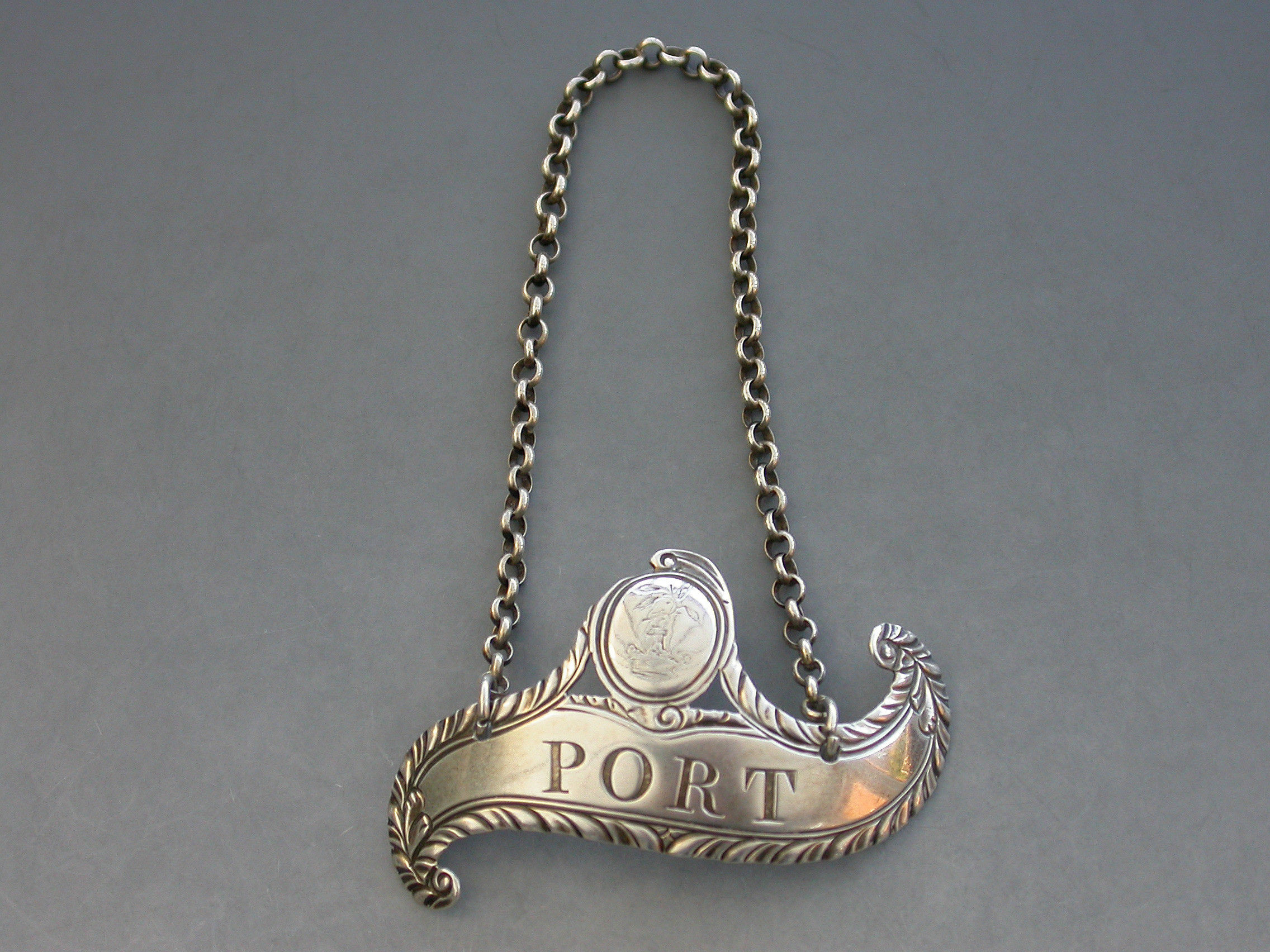 George III Silver Scroll Wine Label 'Port' Crested