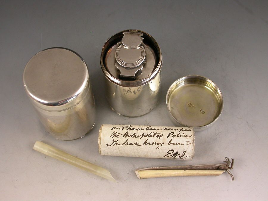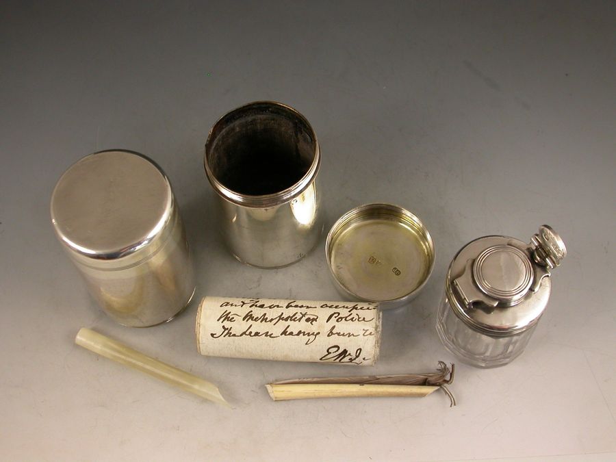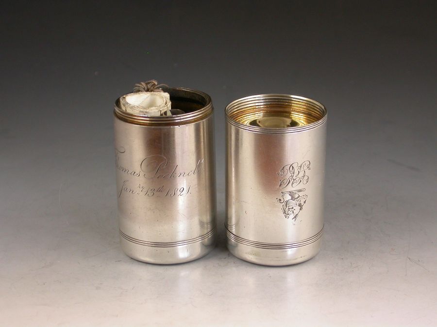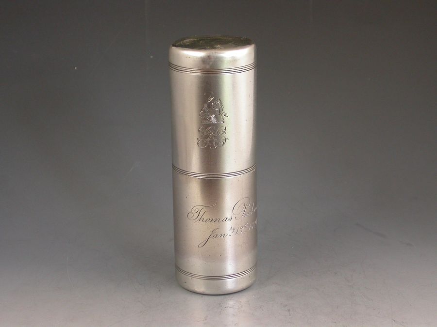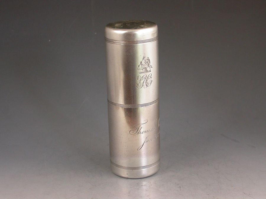 George III Silver Travelling Inkwell / Quill Case Prime Ministerial Interest