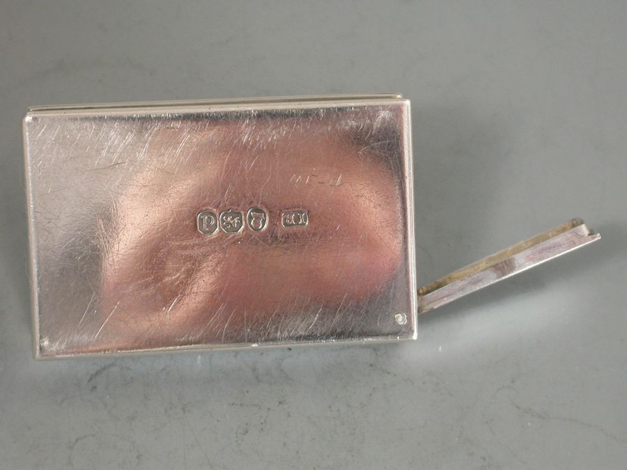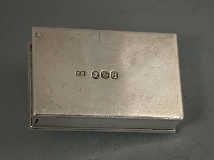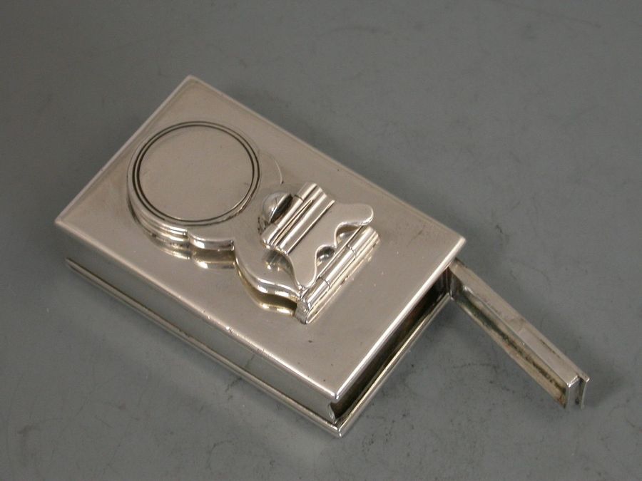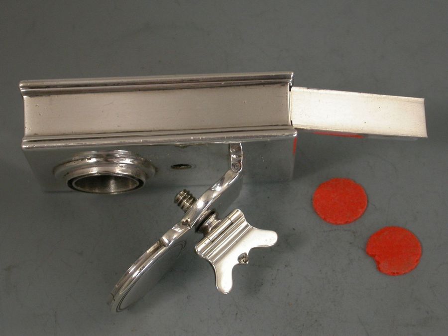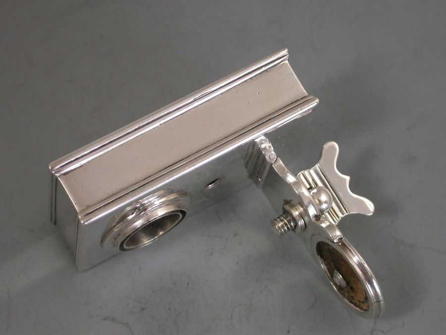 A fine George III silver Travelling Inkwell of shallow rectangular form with hinged screw down cover and a concealed wafer seal compartment to one end.