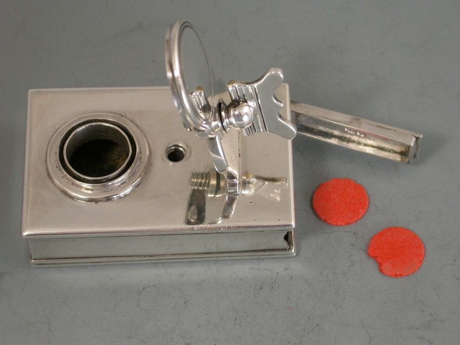 George III Silver Travelling Inkwell with Wafer Seal Compartment