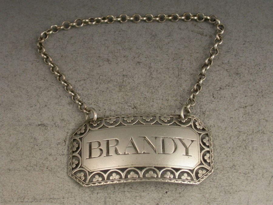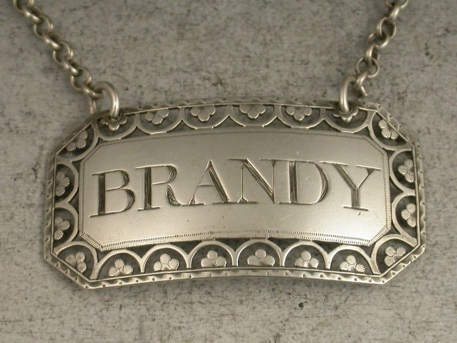 George III Silver Wine Label 'Brandy' Hoop & Trefoil Border