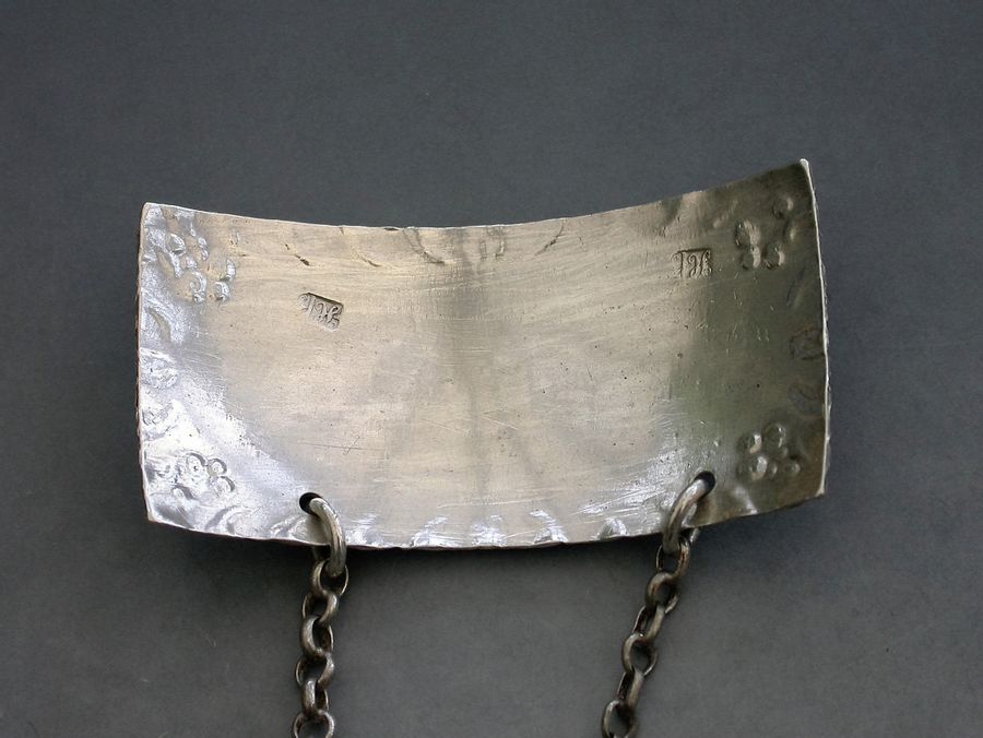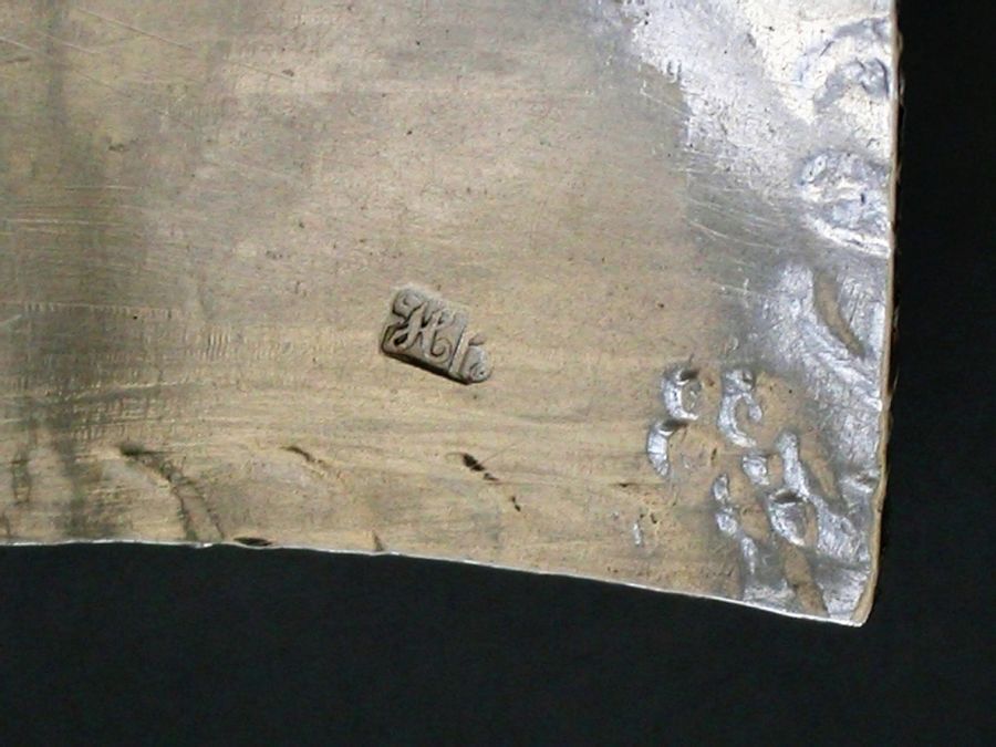 A good George III silver Wine Label of curved rectangular form with gadrooned border and a floral device at each corner, incised for Burgundy.