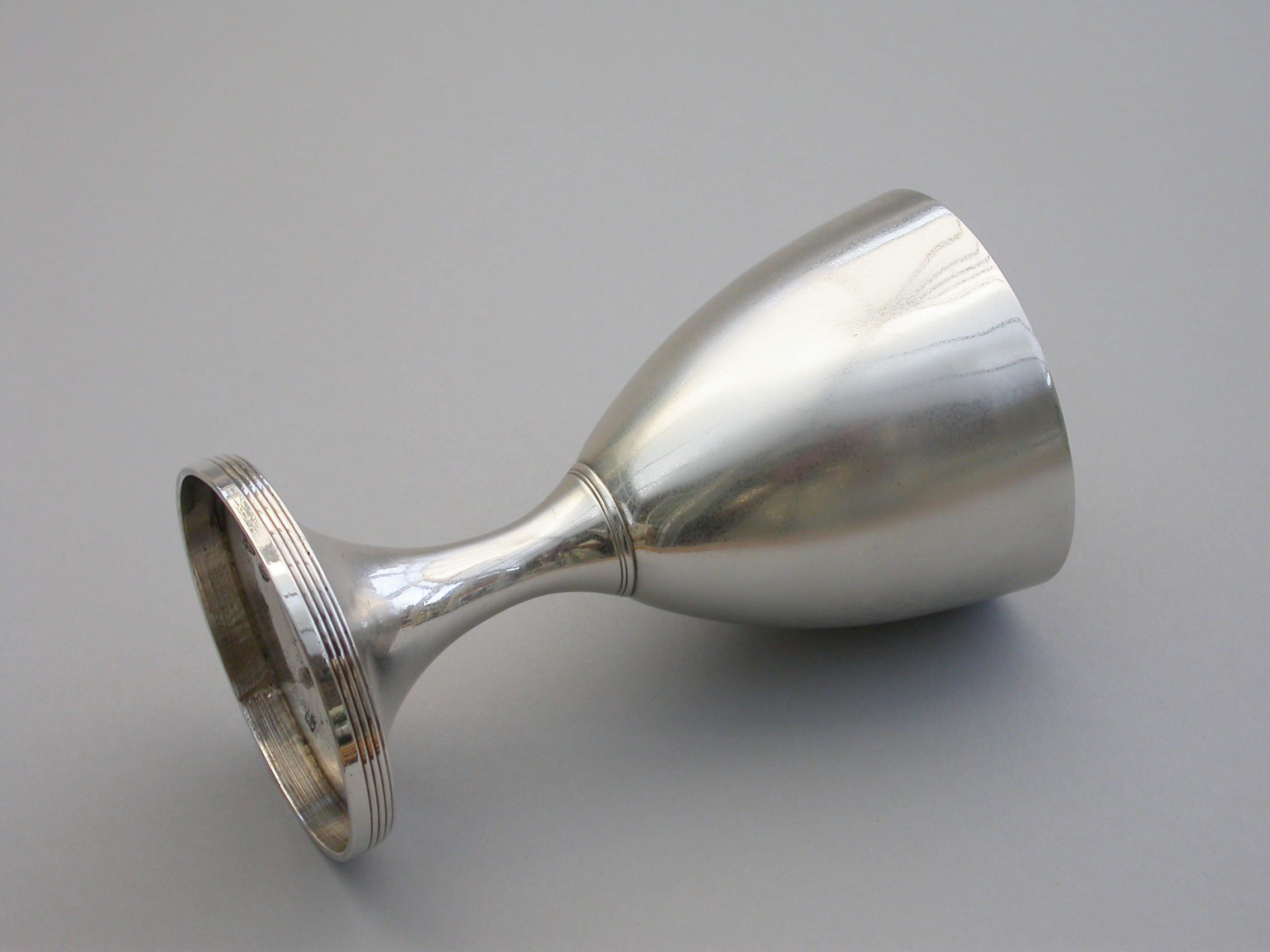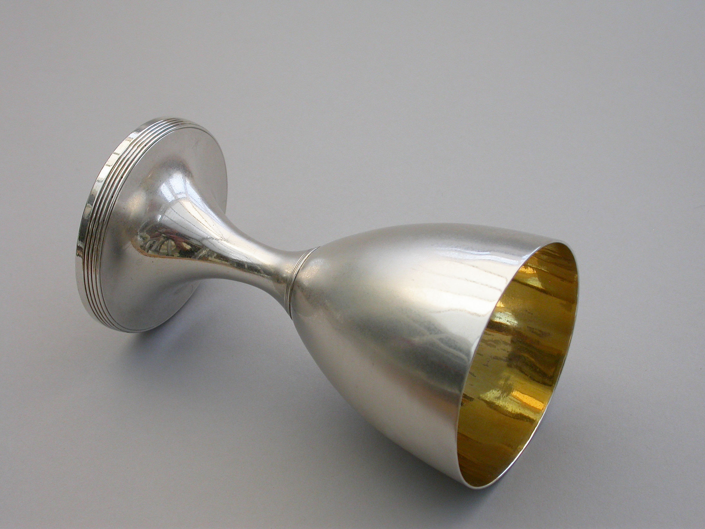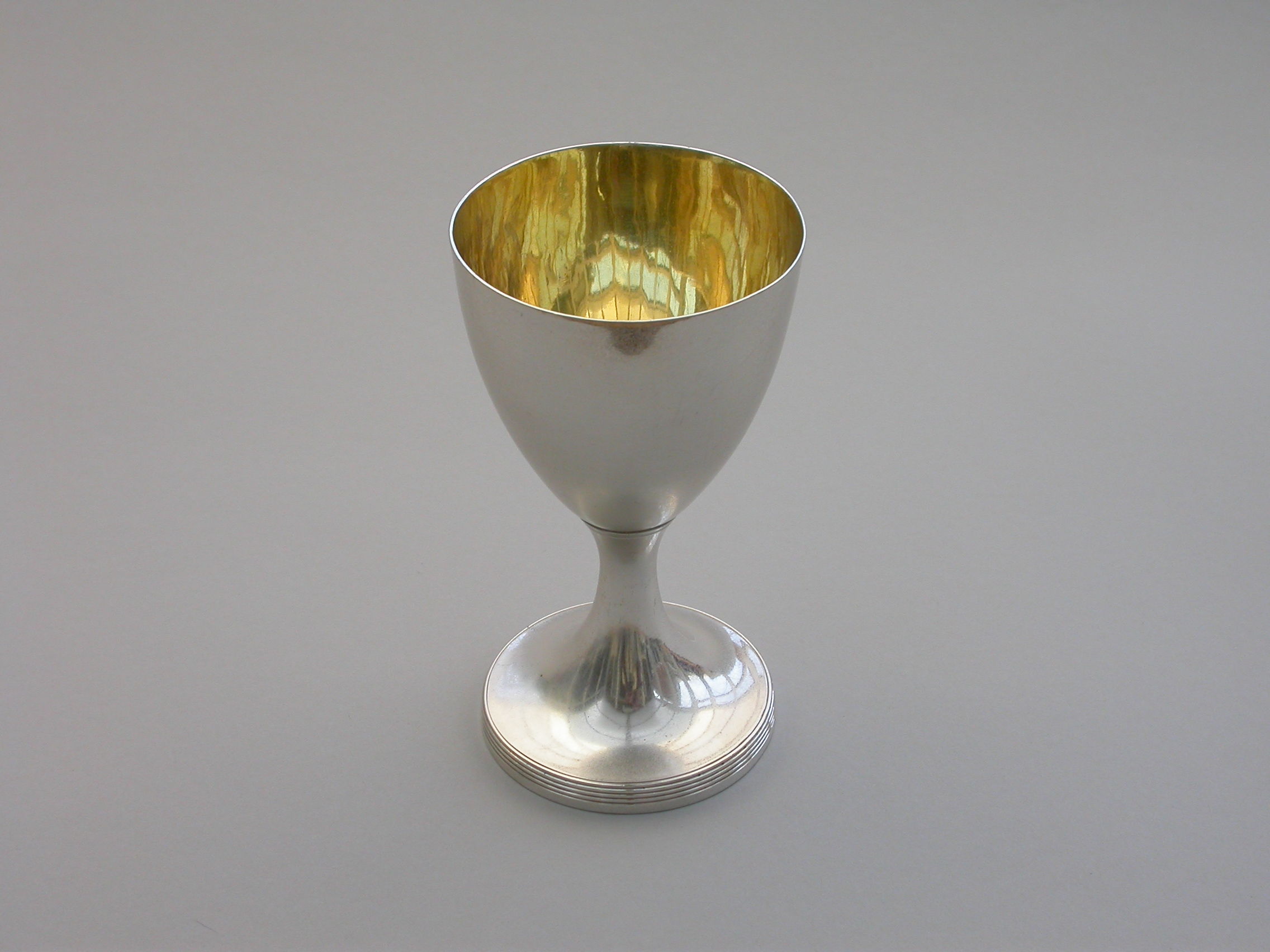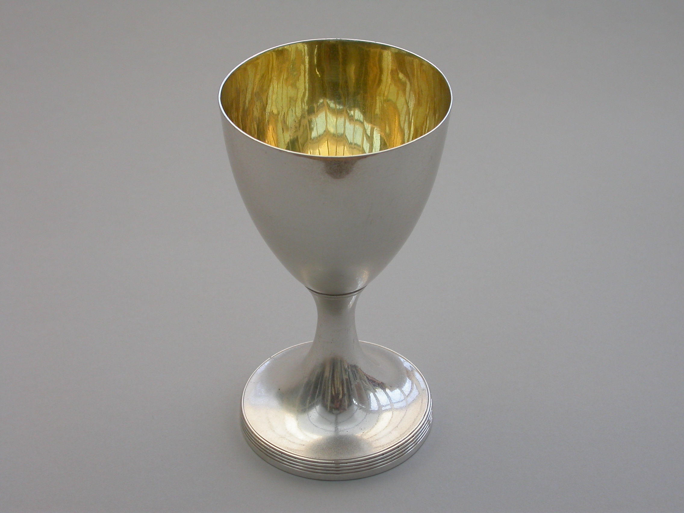 A good quality George III small silver Goblet of plain form with reeded border to the pedestal base. Silver gilt interior. The base with contemporary dated presentation inscription.