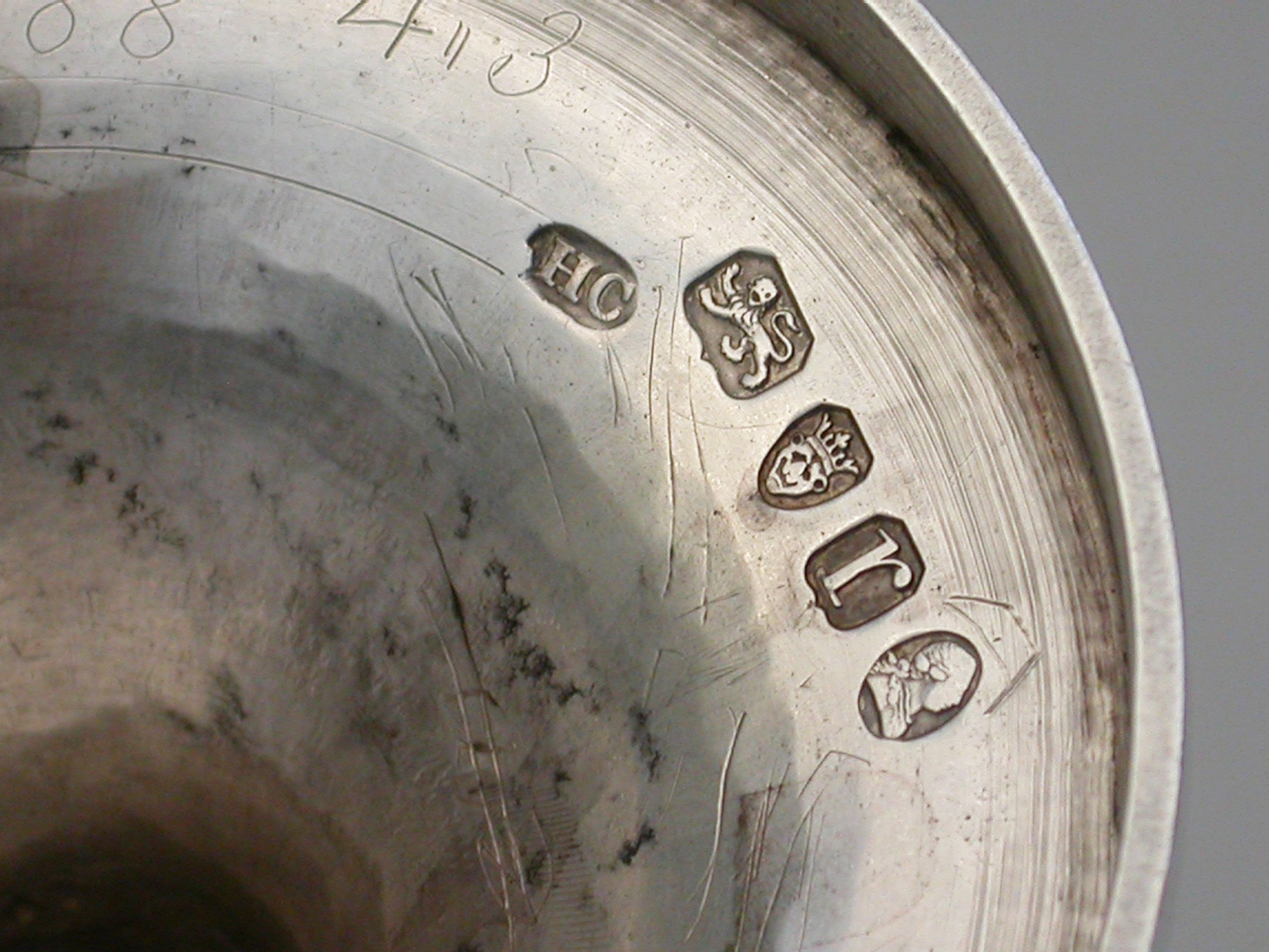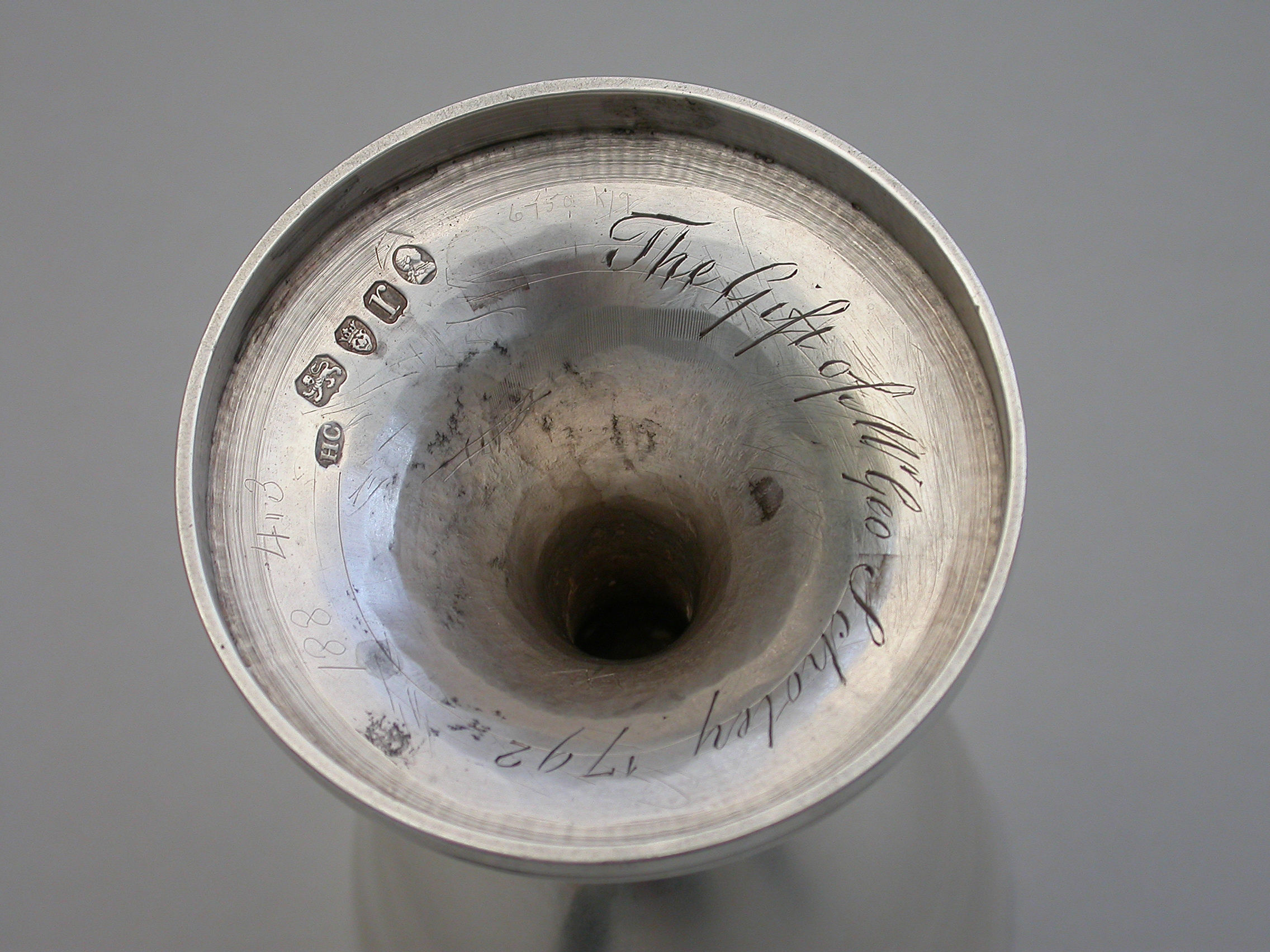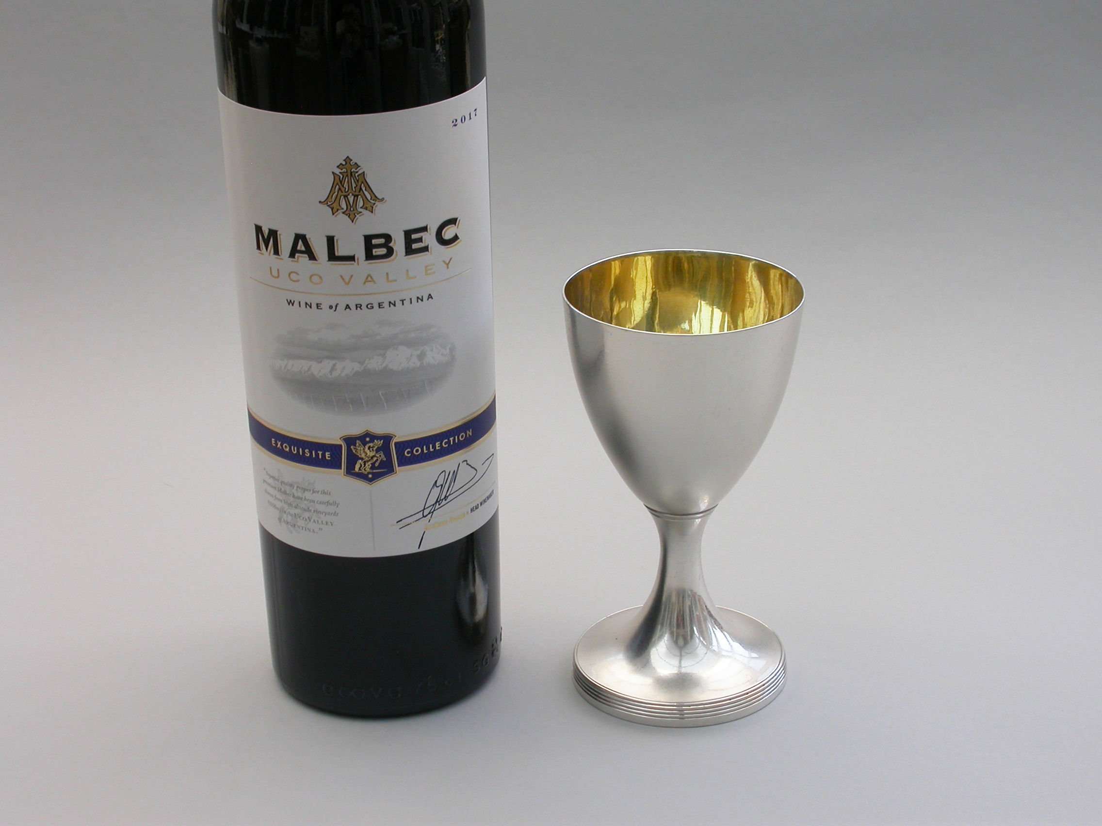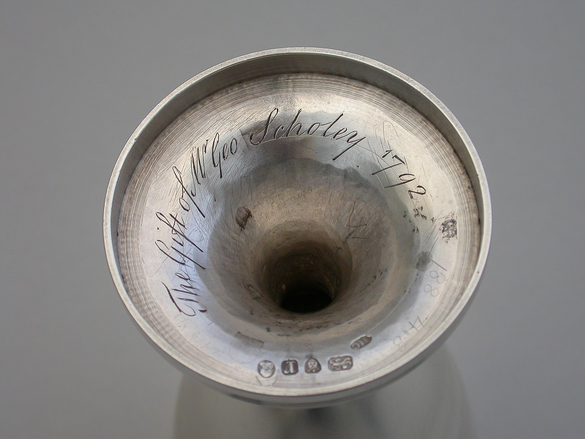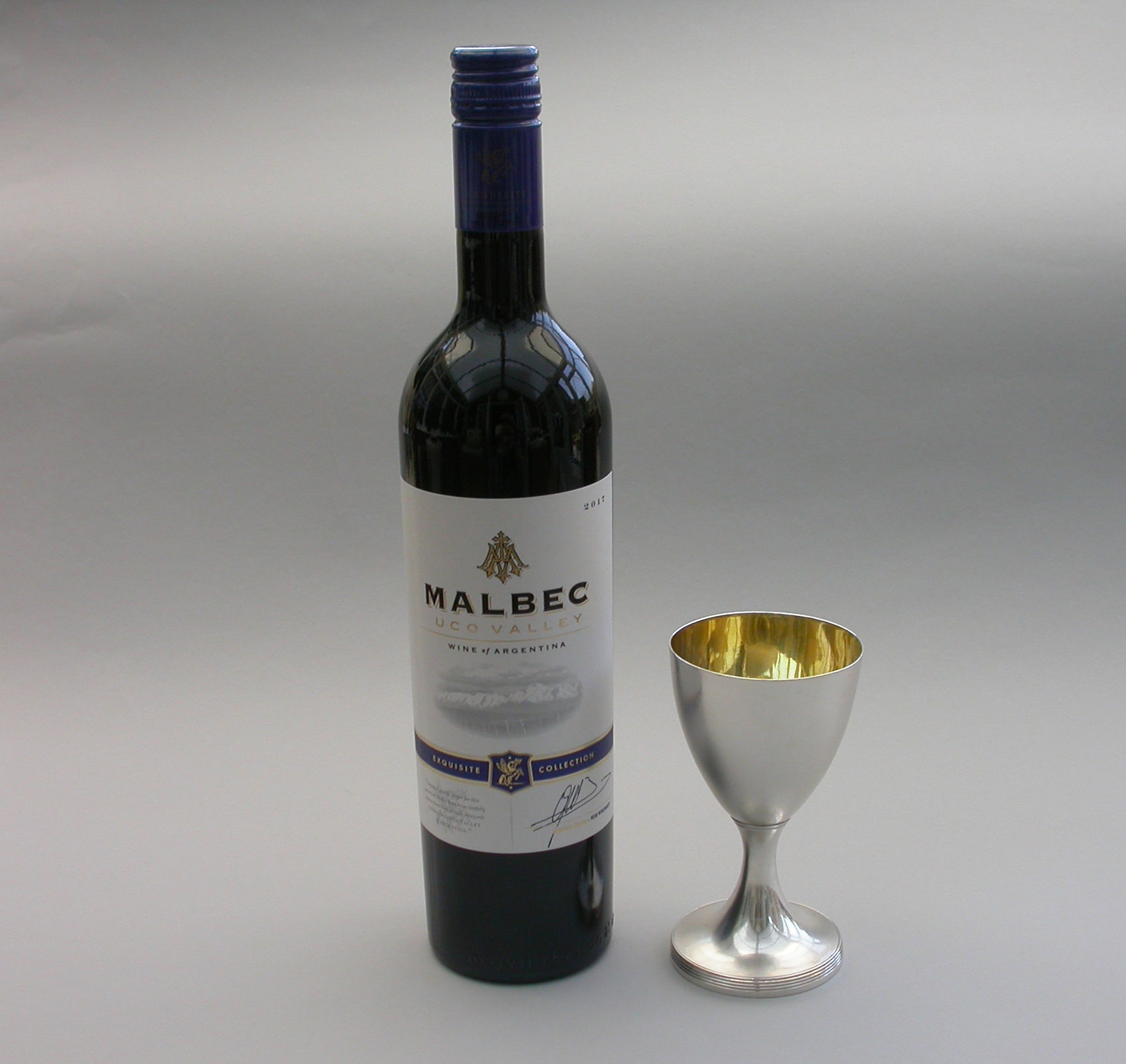 A good quality George III small silver Goblet of plain form with reeded border to the pedestal base. Silver gilt interior. The base with contemporary dated presentation inscription.