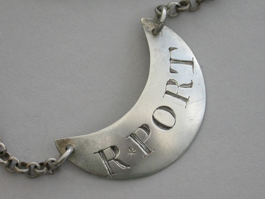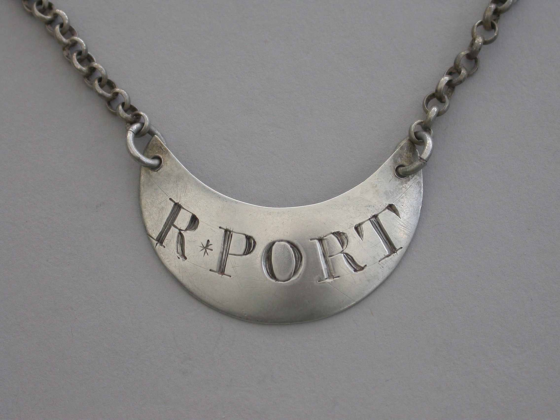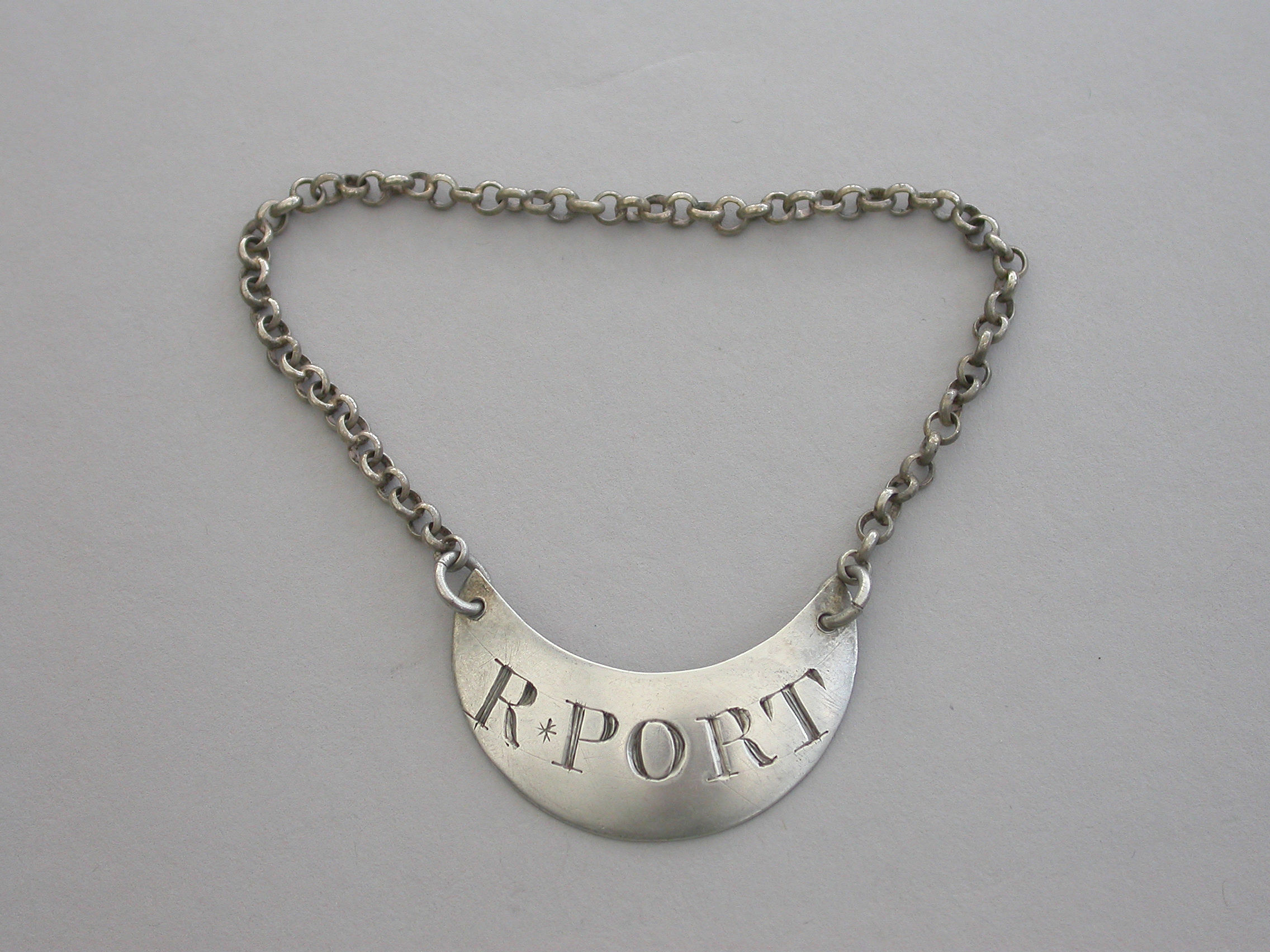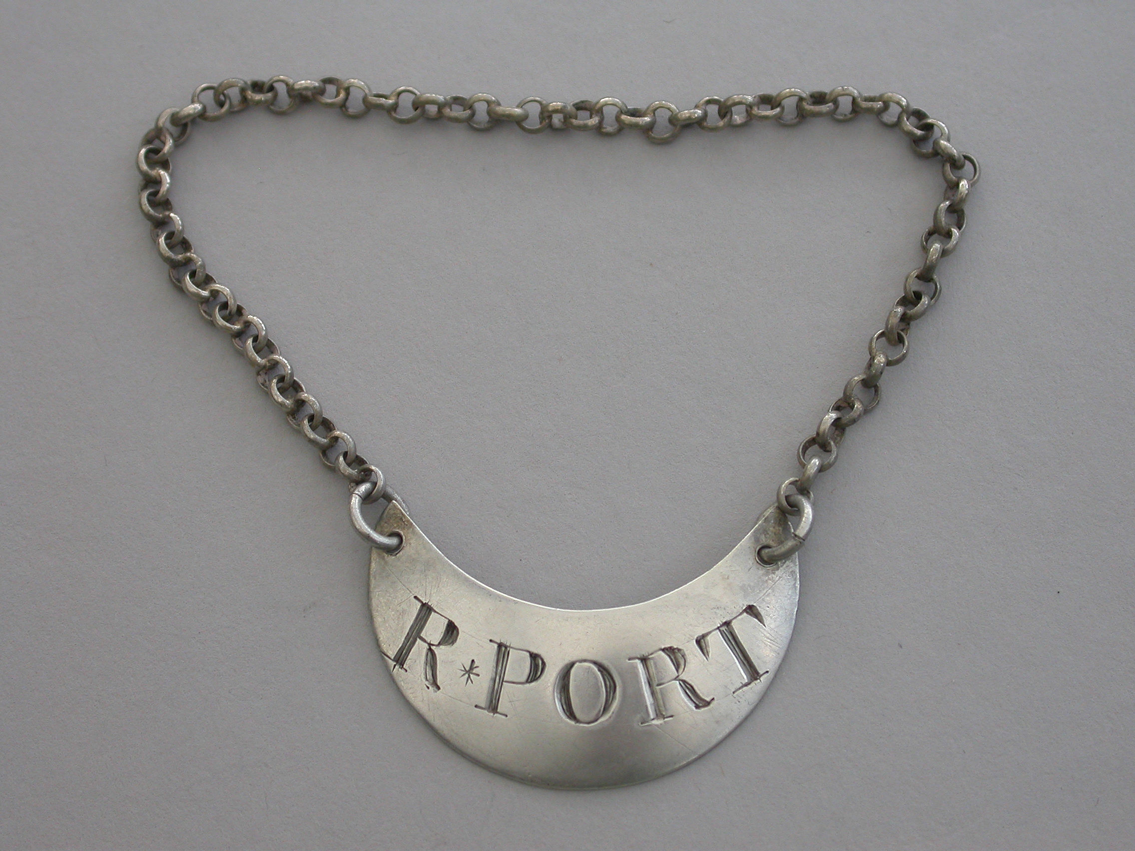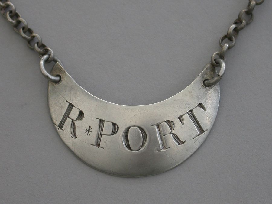 An unusual George III silver Wine Label of plain gorget shape, incised for R*Port