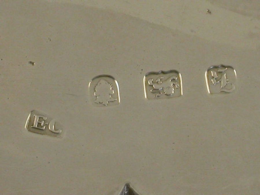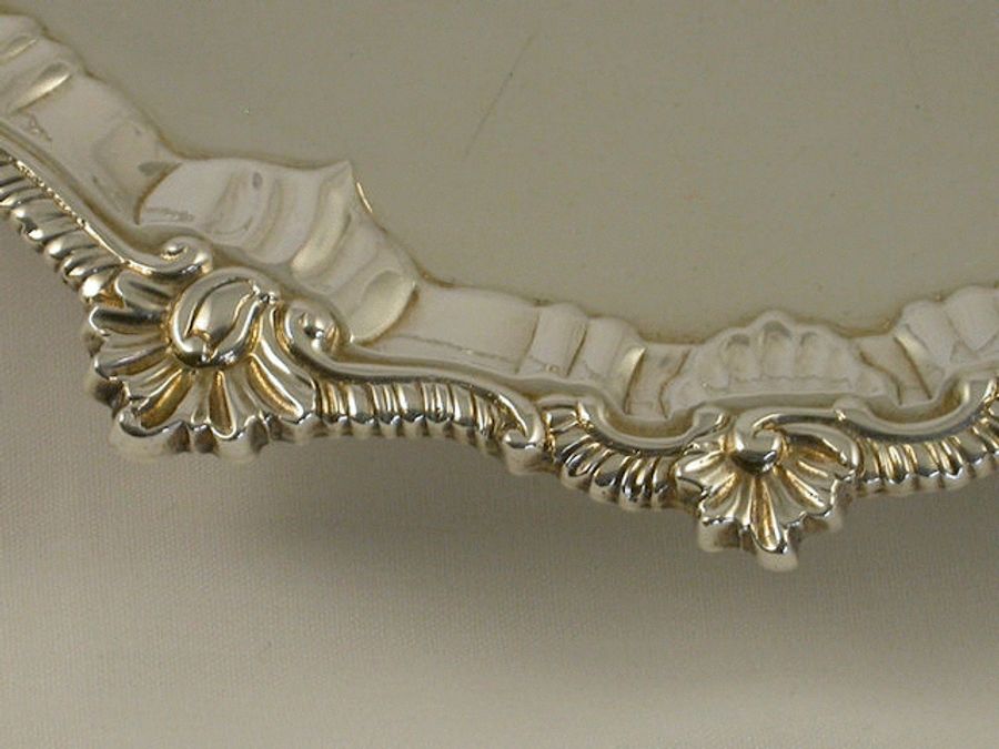 A good George III circular silver Waiter with shell, scroll and gadrooned border, standing on three claw feet, engraved with a contemporary Coat of Arms. The reverse engraved with initials M over M : R.