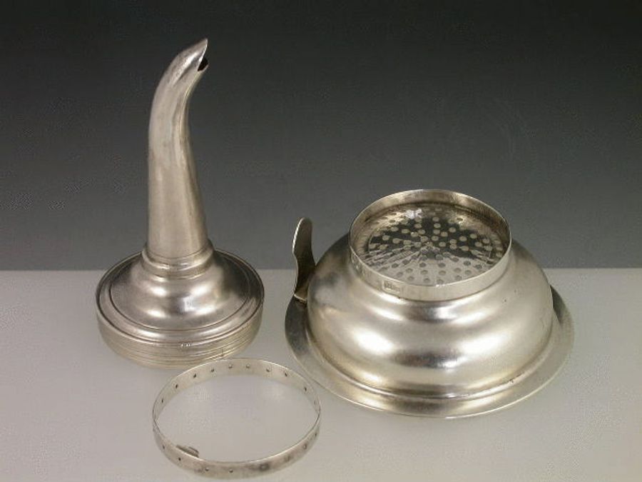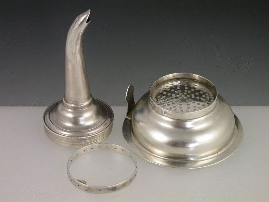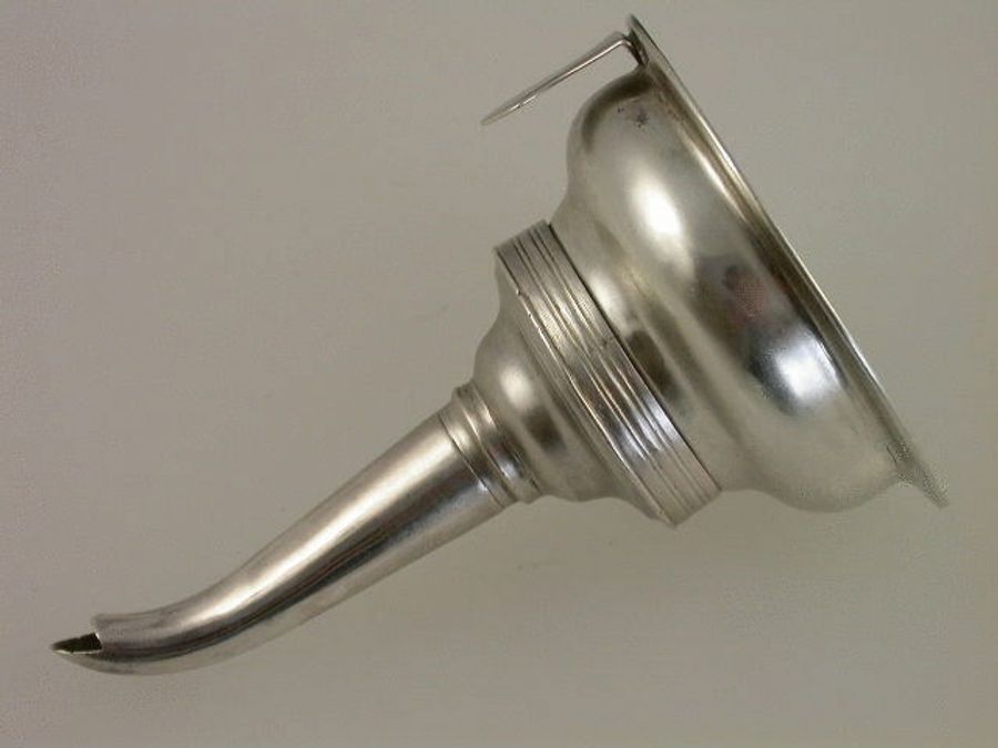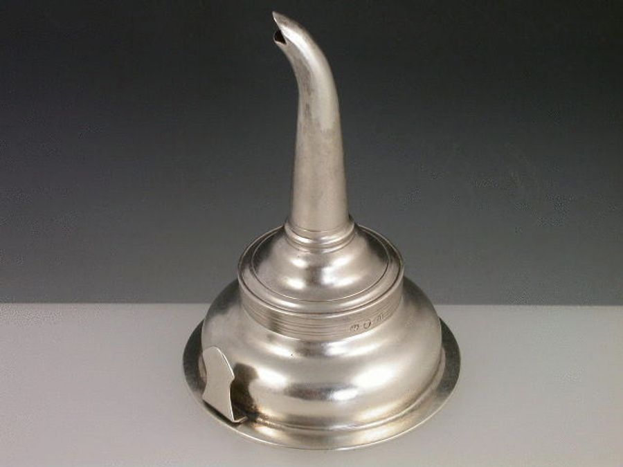 A good George III silver Wine Funnel, of plain form with reeded rims and plain shaped tang, complete with original muslin retaining ring. The body engraved with initial letter J.
