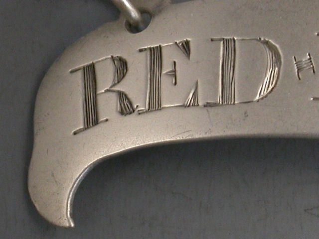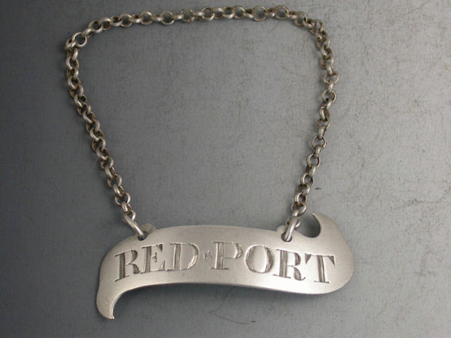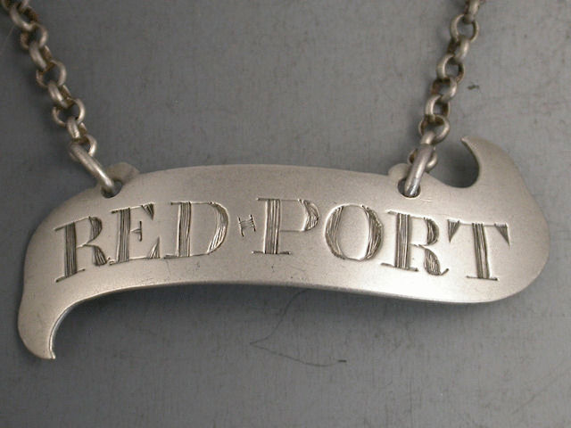 A good 18th century silver Wine Label of plain asymmetrical scroll form with raised eyelets, incised with bold lettering for Red * Port.