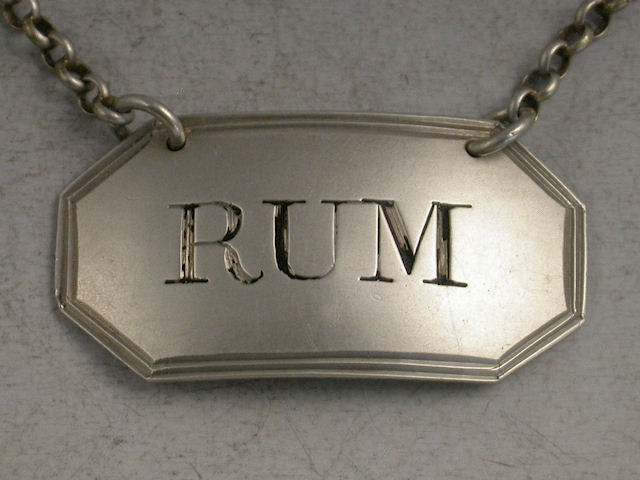 A George III silver Wine Label of cut-cornered rectangular form with double thread border, incised for Rum.