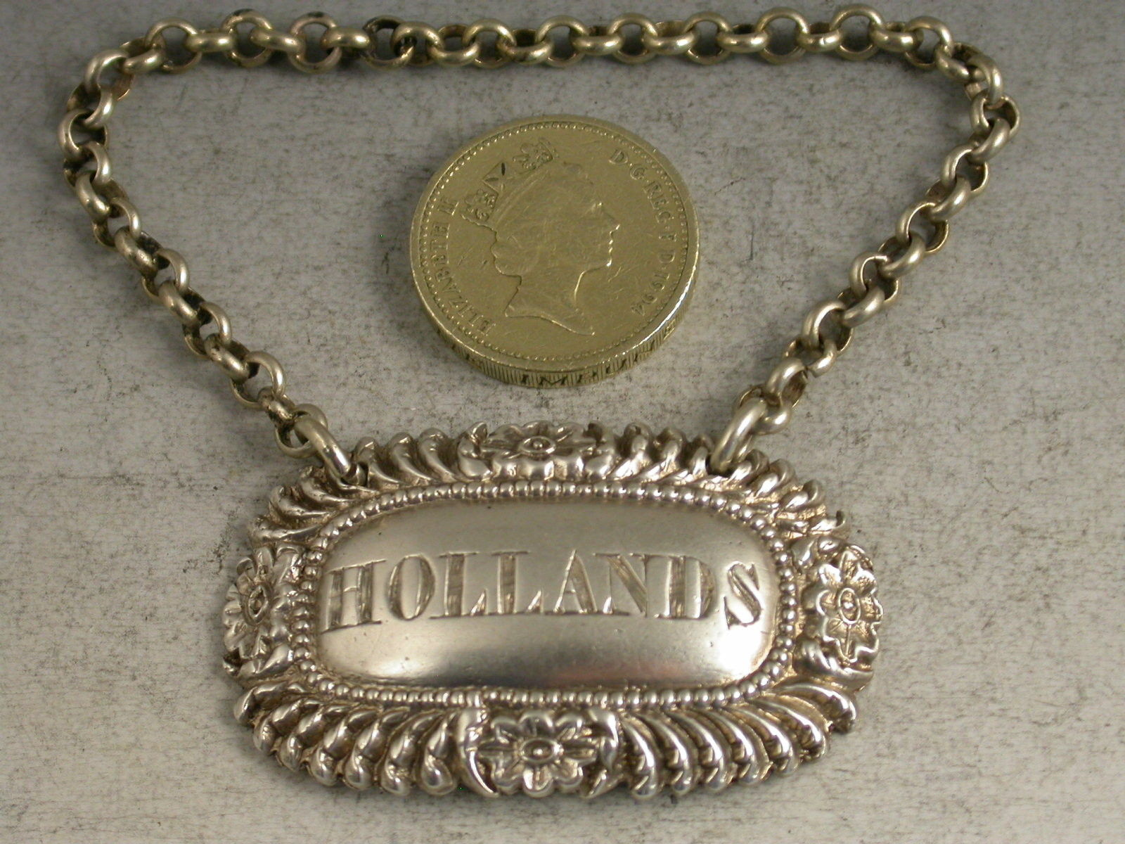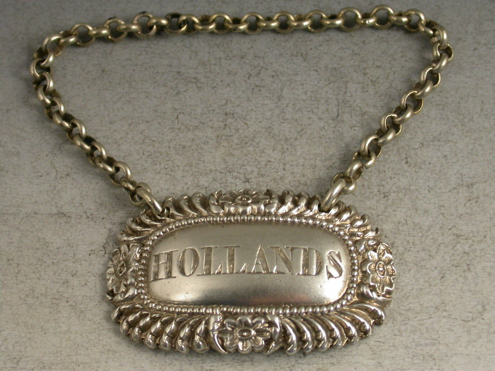 George IV Antique Cast Silver Wine Label 'Hollands' large size