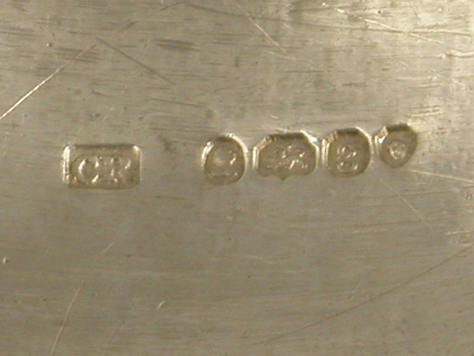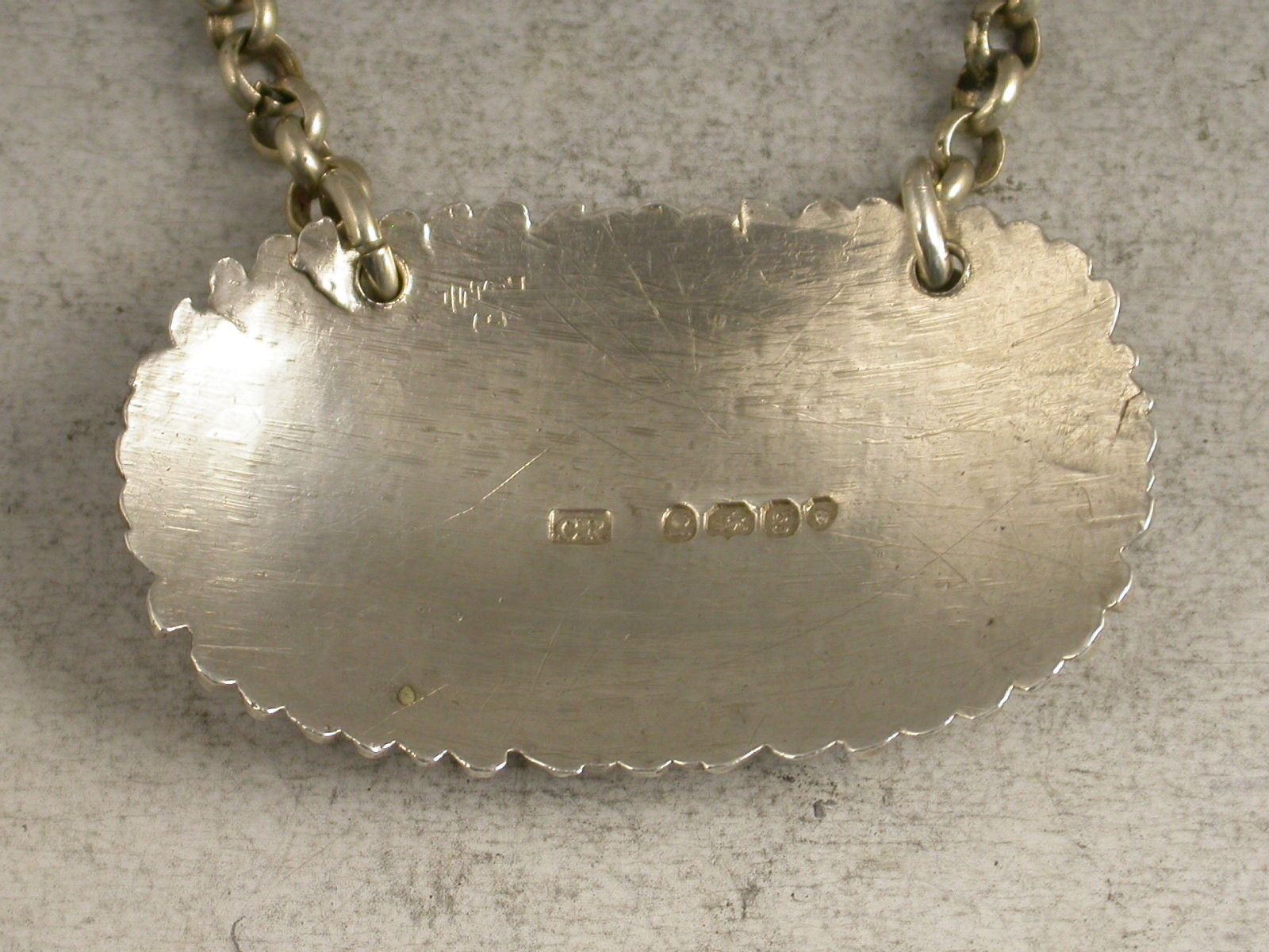 A good George IV cast silver Wine Label of shaped oval form with gadrooned border, interspersed by four flower heads, the plain name plate incised for Hollands.