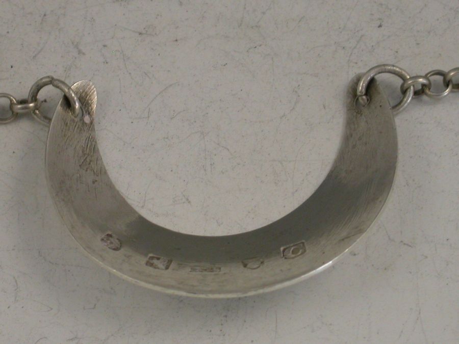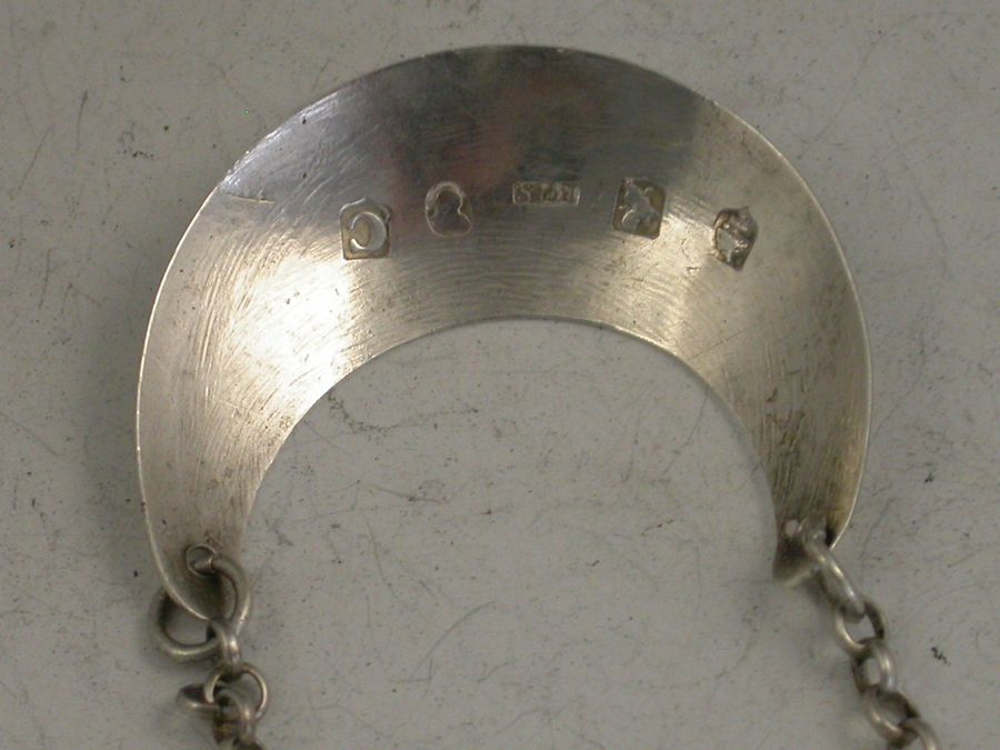 A fine George IV Scottish silver Wine Label of plain deep crescent form, incised and niello filled for Shrub.