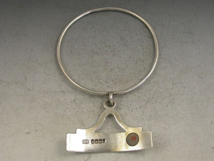 A good George IV silver Wine Label of neck ring form, the rectangular label with pierced domed surmount and single suspension loop attached to circular silver wire support, incised for Sherry.