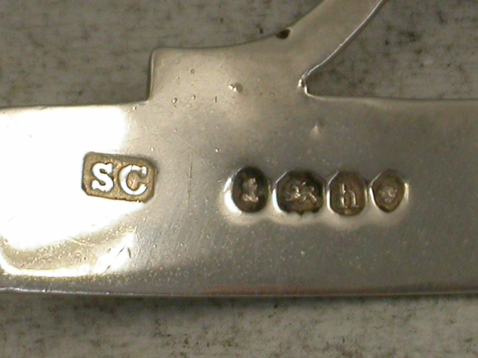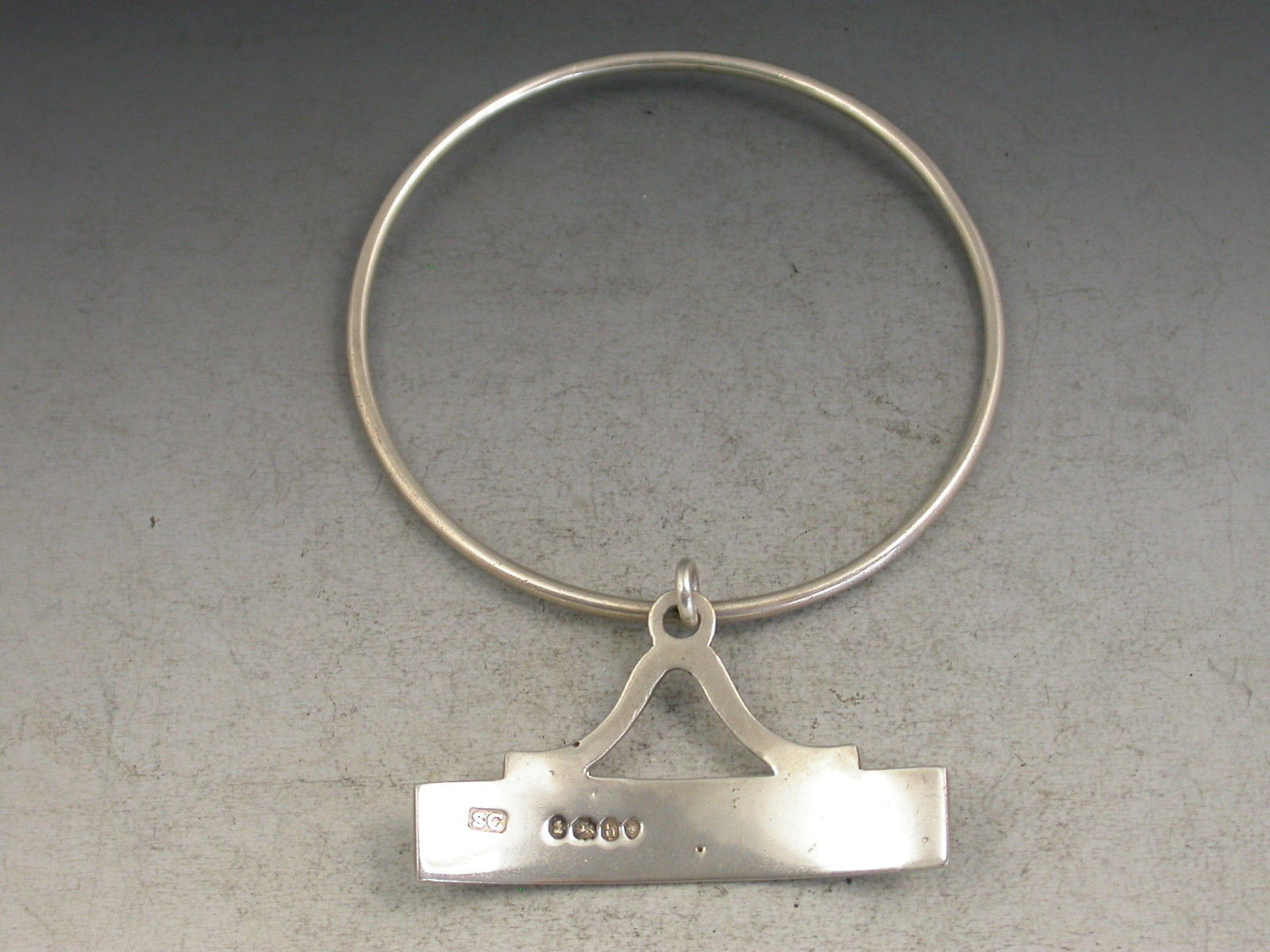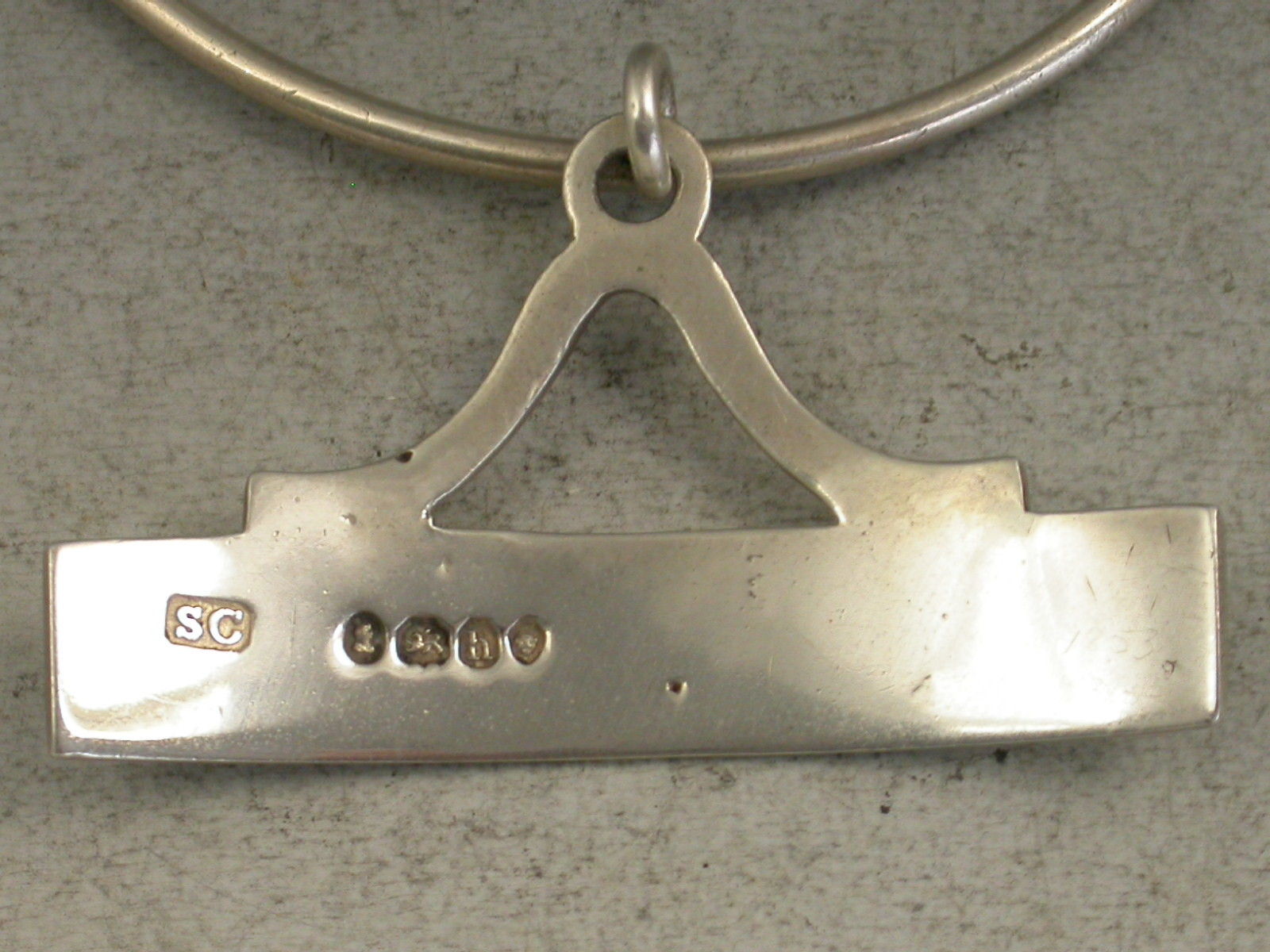 A good George IV silver Wine Label of neck ring form, the rectangular label with pierced domed surmount and single suspension loop attached to circular silver wire support, incised for Vidonia.(A Wine from the Canary Islands)