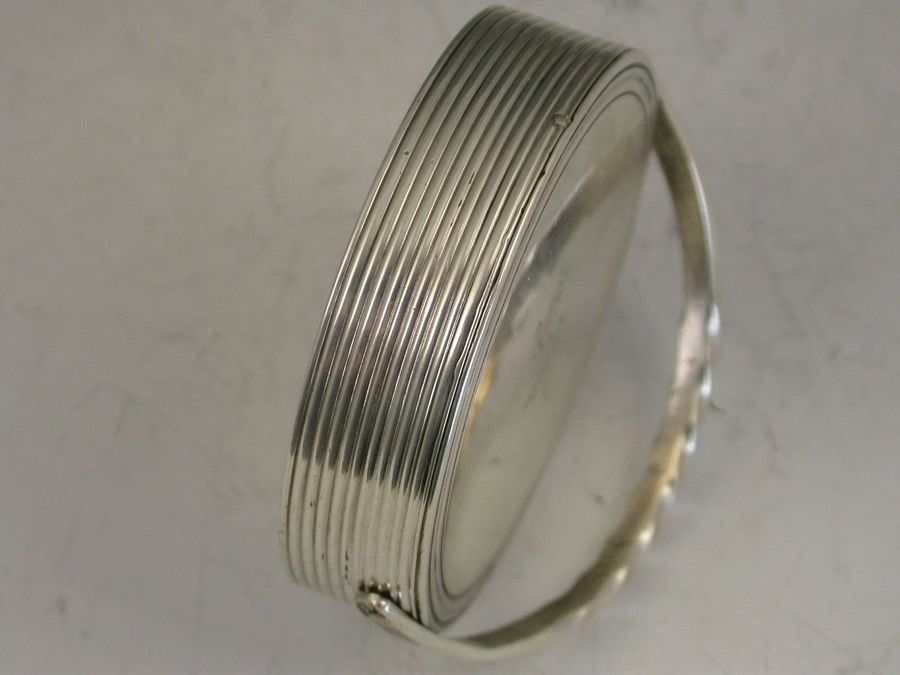 An unusual George IV silver Paperweight of circular form with reeded sides and twisted swing handle, the top engraved with a crest depicting a bird issuing out of a coronet. Probably weighted with lead (205 grams).
