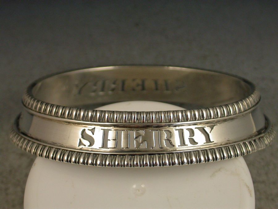 George IV Cast Silver Bottle Collar Wine Label 'Sherry'