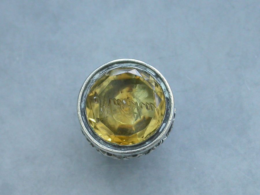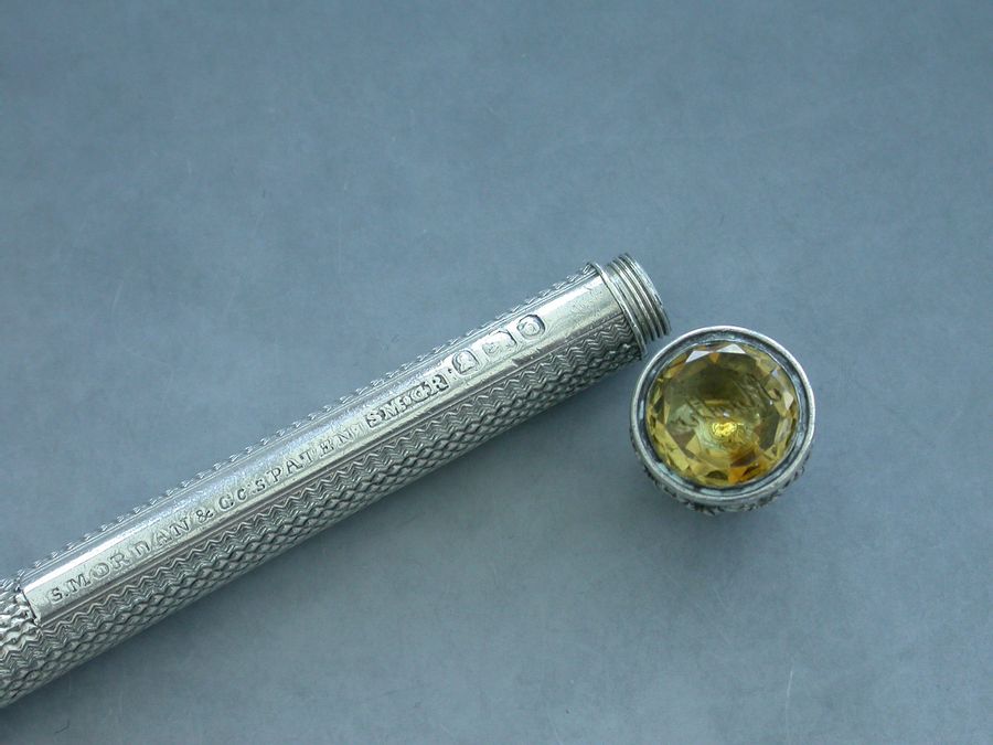 A good George IV fully hallmarked silver sliding Propelling Pencil with engine turned decoration to the body, the screw off terminal set with a carved citrine seal stone engraved ""Martha"".