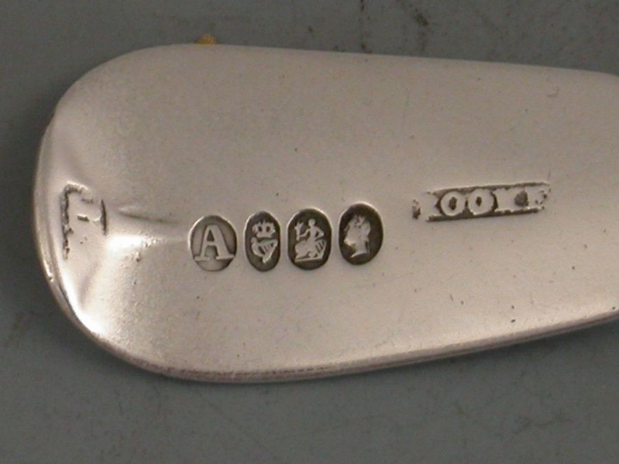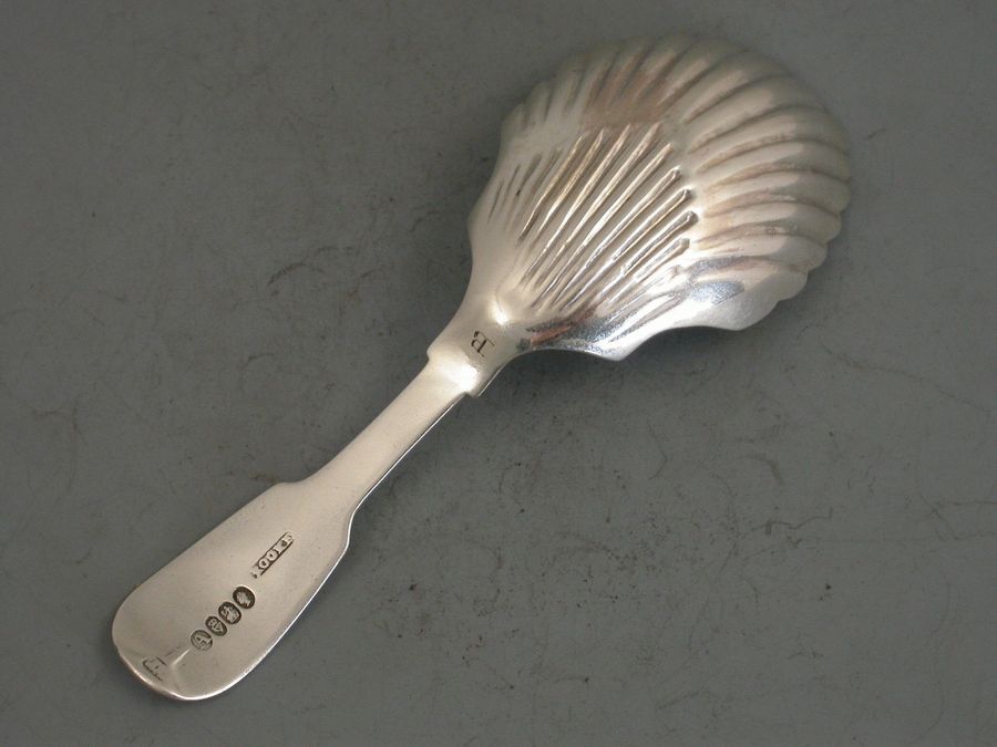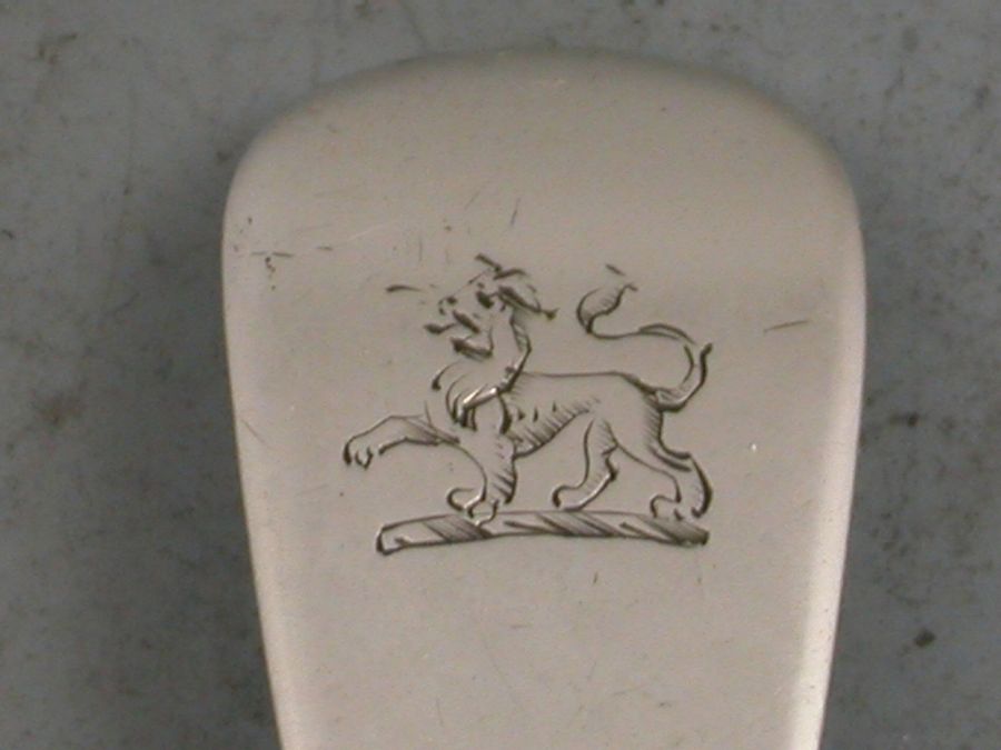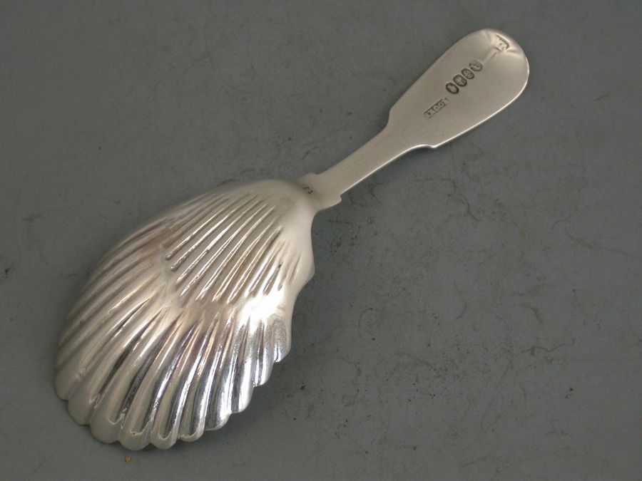 A rare George IV Irish silver Caddy Spoon with shaped oval fluted bowl, the plain fiddle pattern handle engraved with a crest of a lion passant.