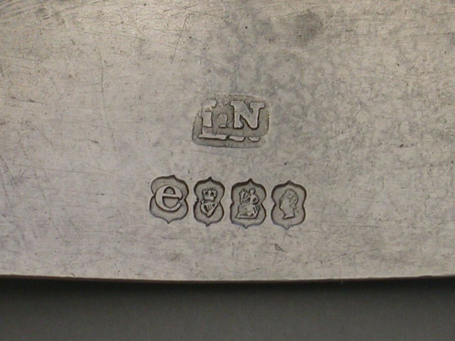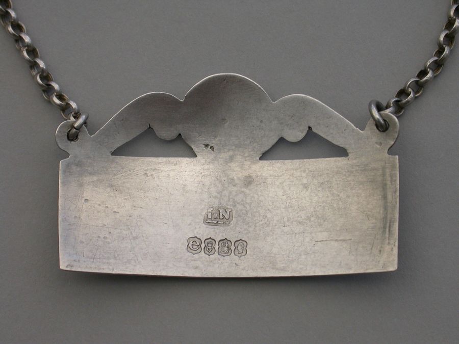 A rare George IV Irish silver Wine Label of curved rectangular form with double reeded border, a raised and pierced pediment with a central cartouche engraved with a crest.