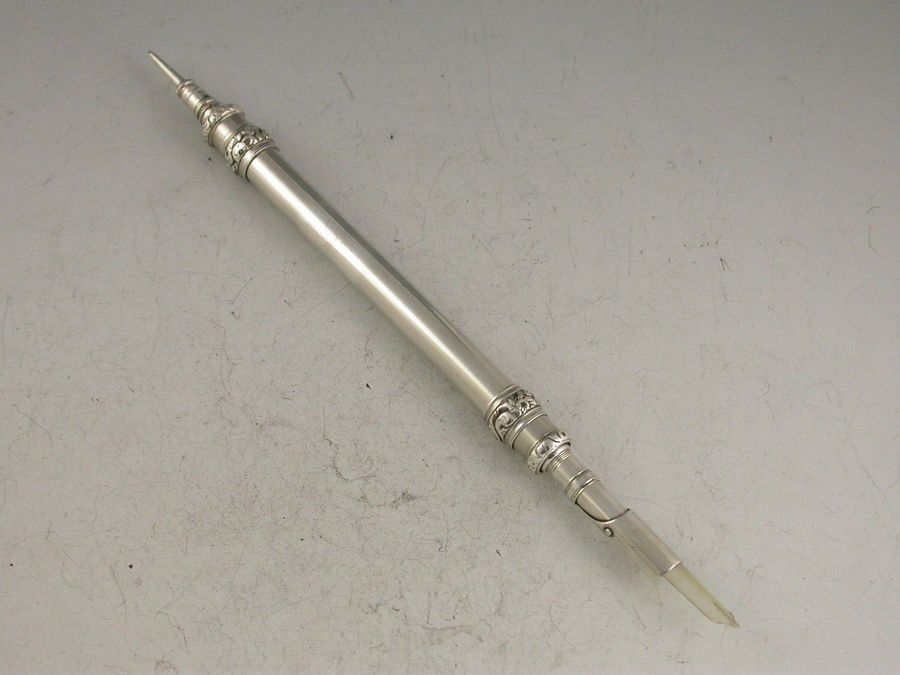 George IV Silver Combination Sliding Propelling Pencil & Bramah Quill Holder