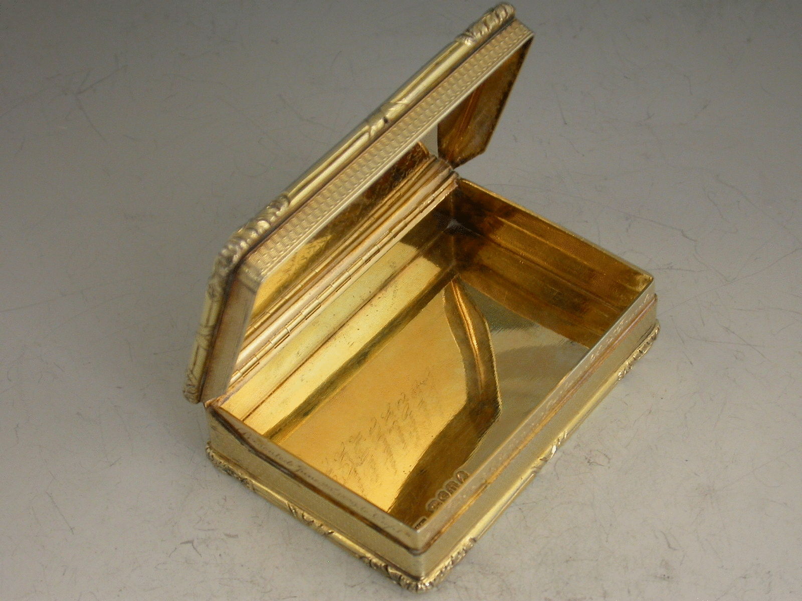 By James William Garland, London, 1828. A scarce maker of Snuff Boxes, Garland is listed in Grimwade as a gold worker.