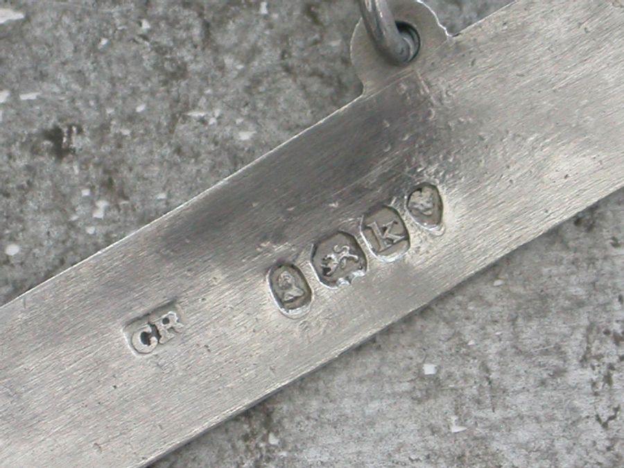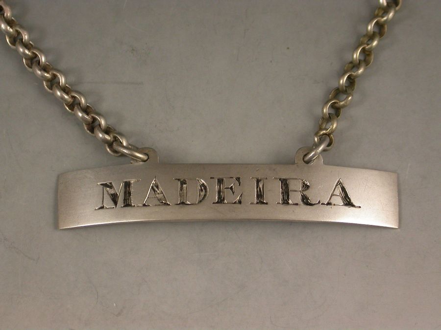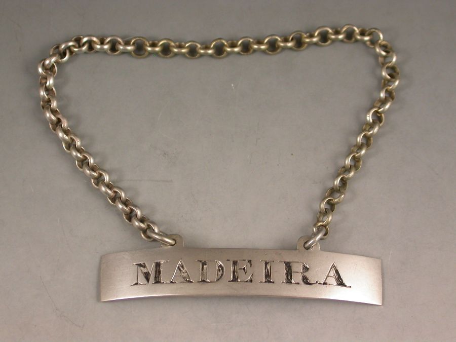 A George IV silver Wine Label of plain narrow rectangular form with raised eyelets, incised for Madeira.