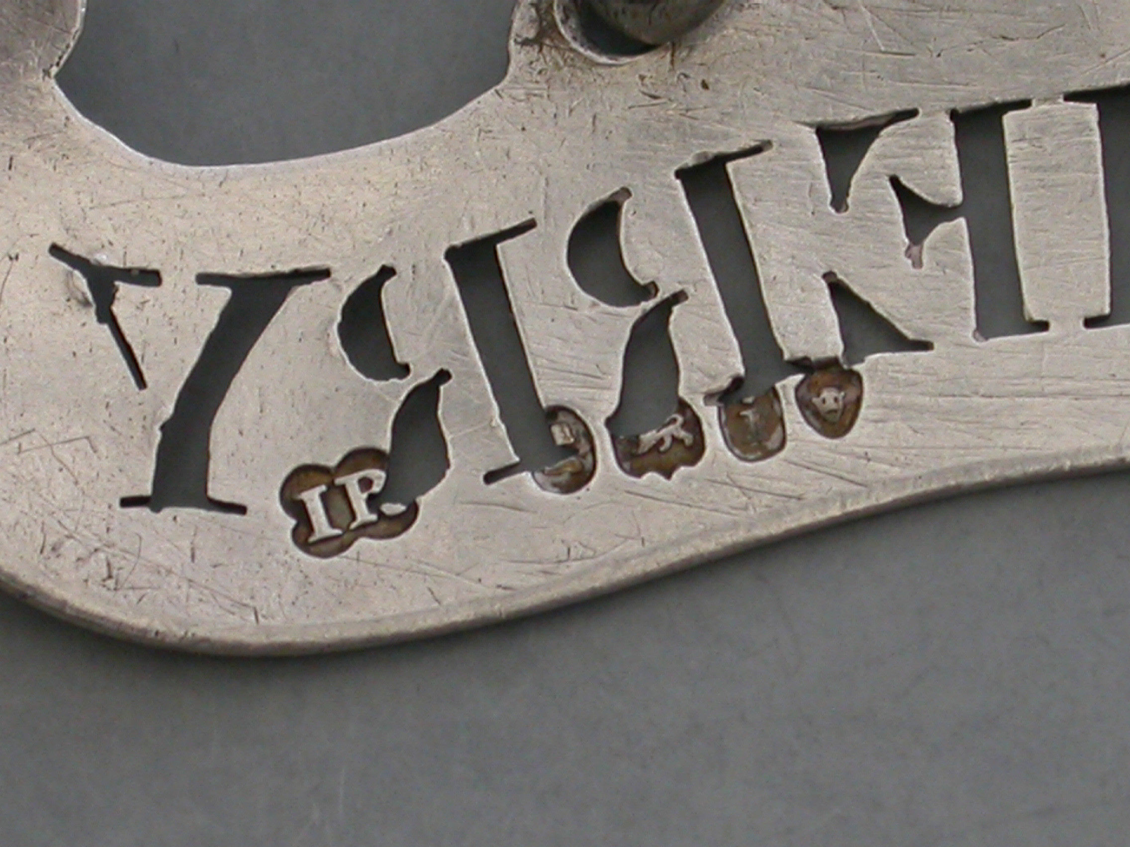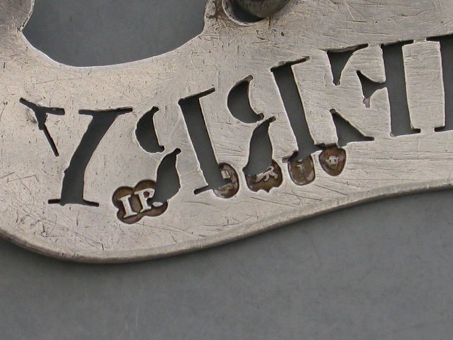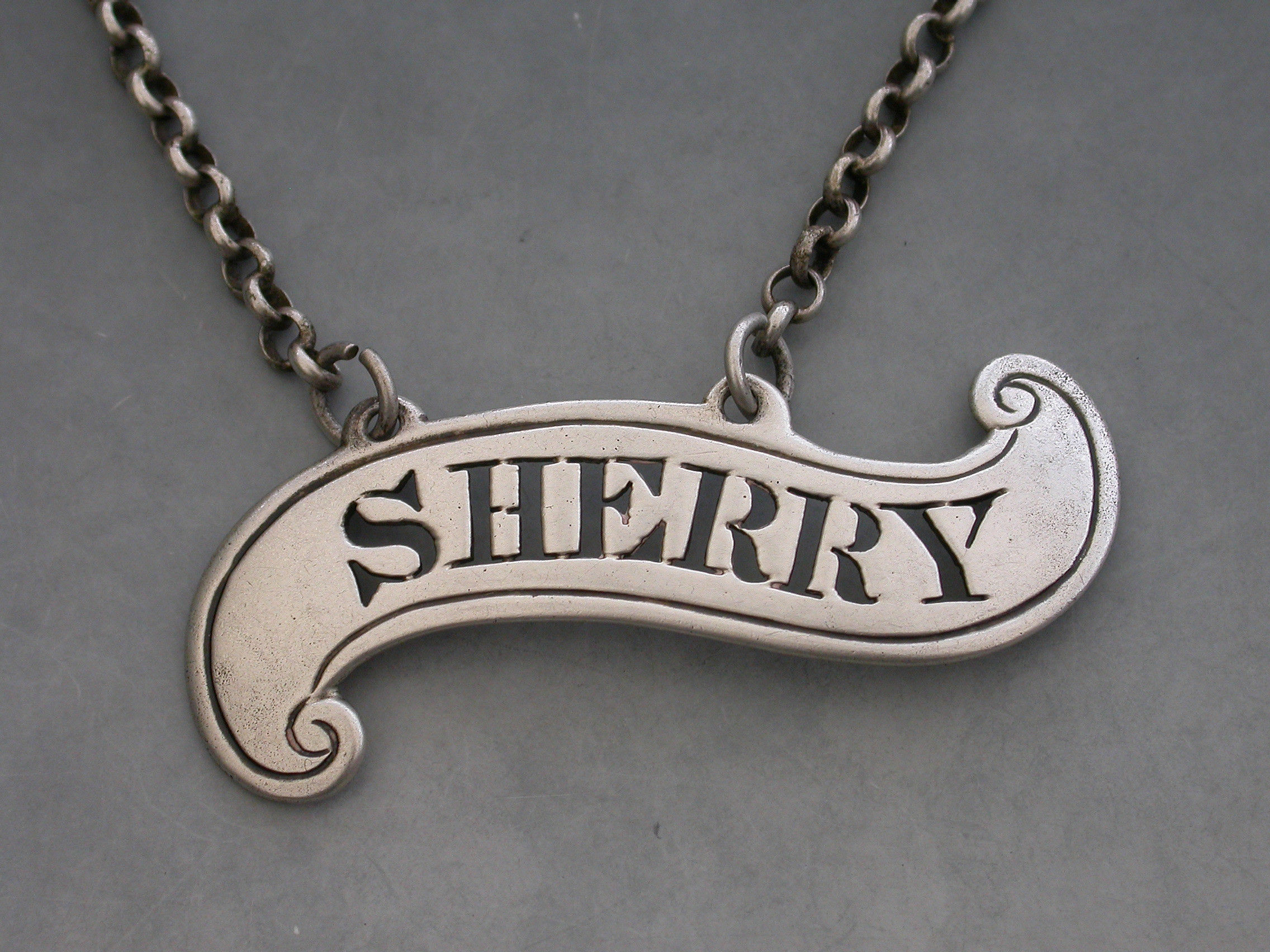 An unusual George IV silver Wine Label of plain scroll form with single reeded border, pierced for Sherry.