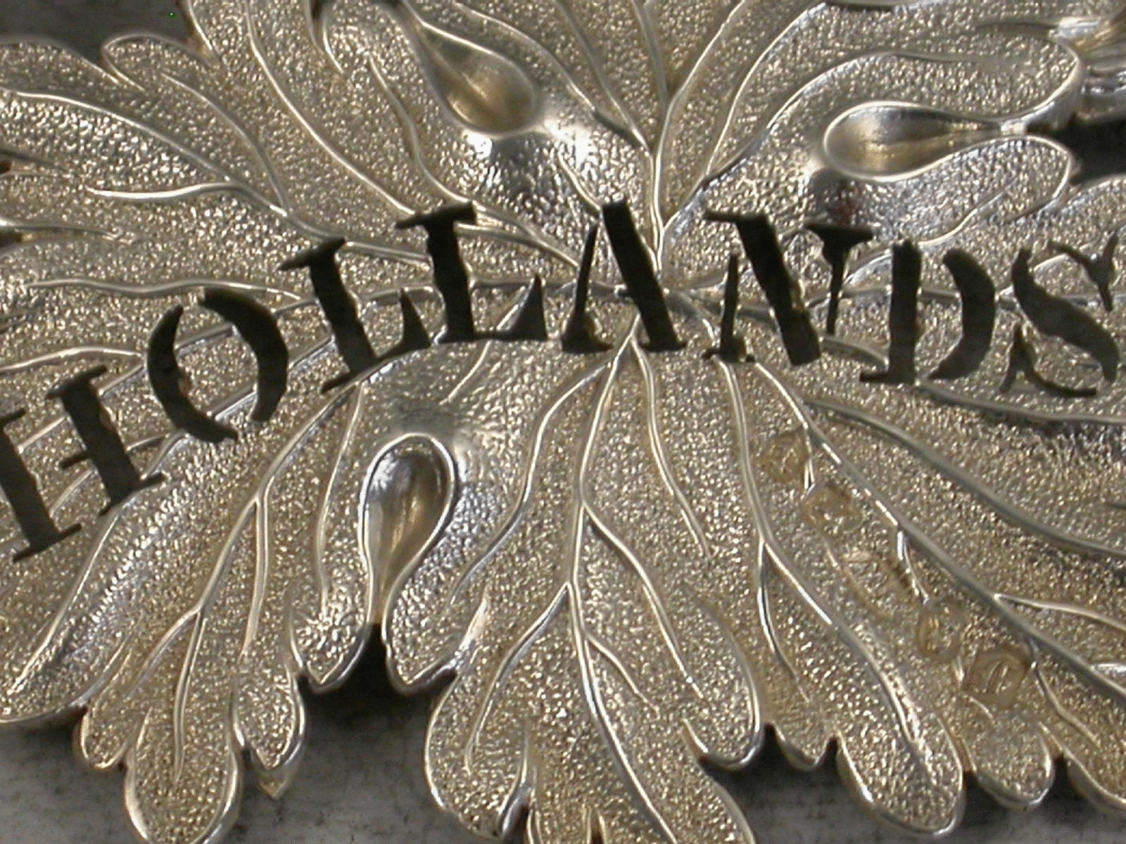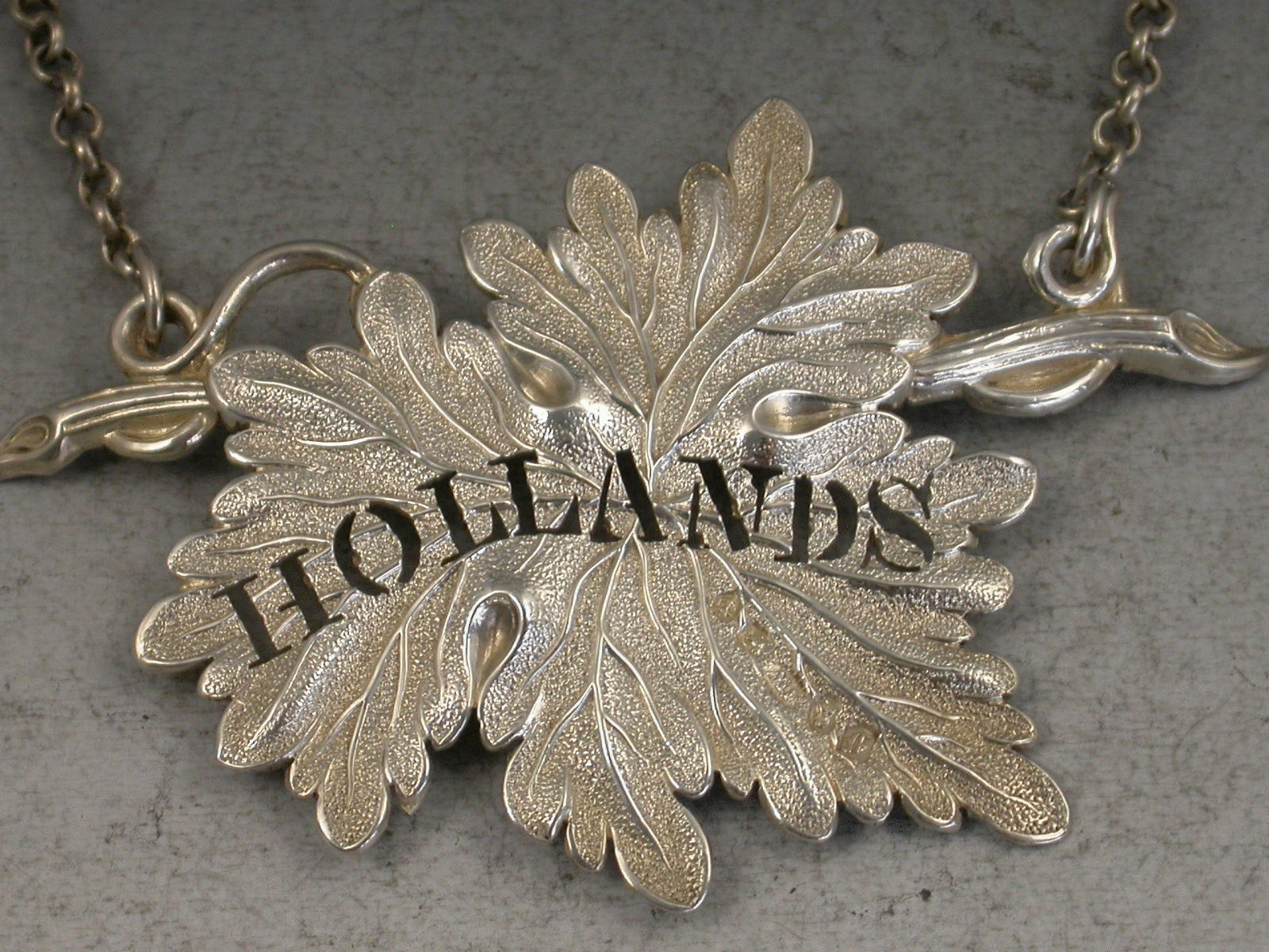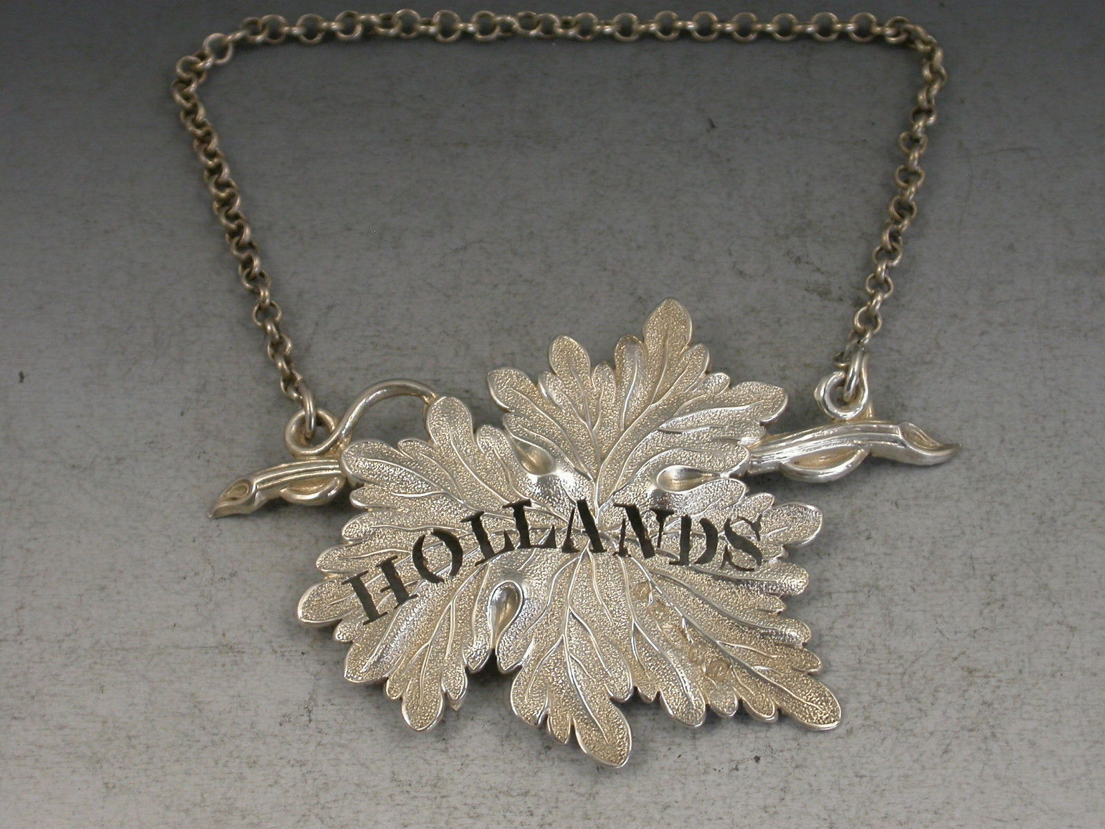 A George IV silver Wine Label of single vine leaf form pierced for Hollands.
