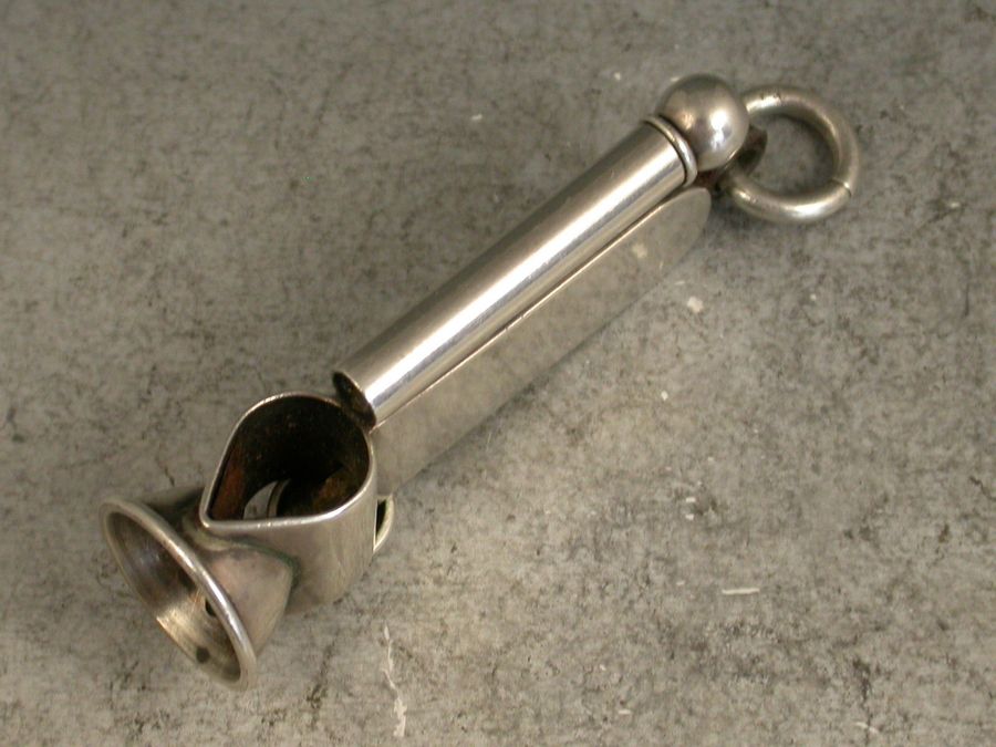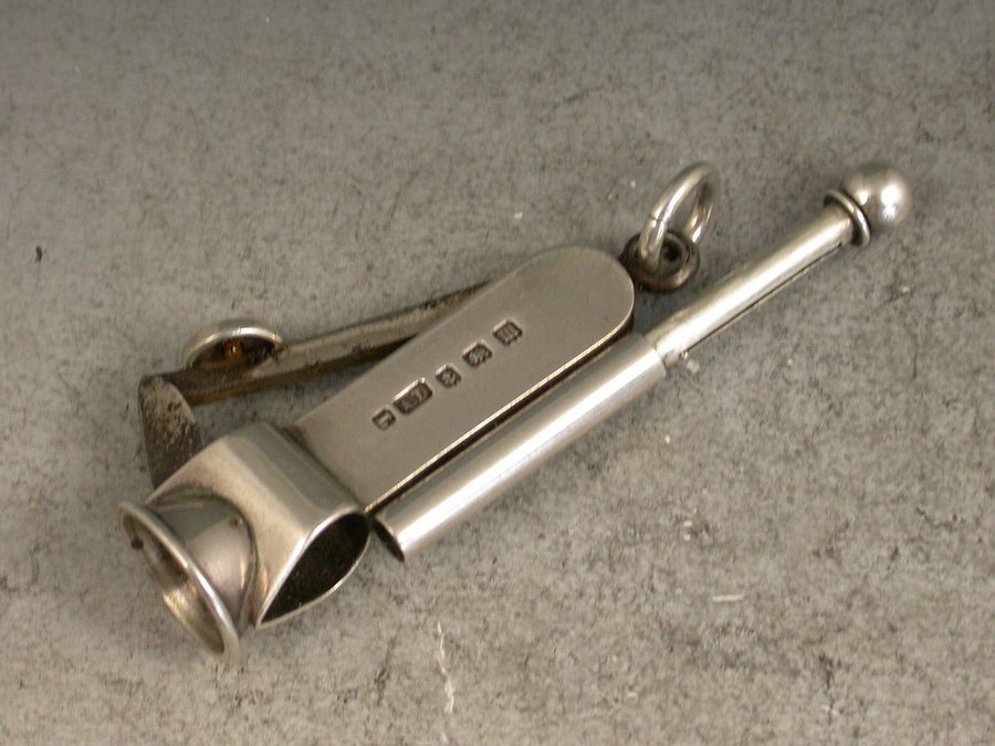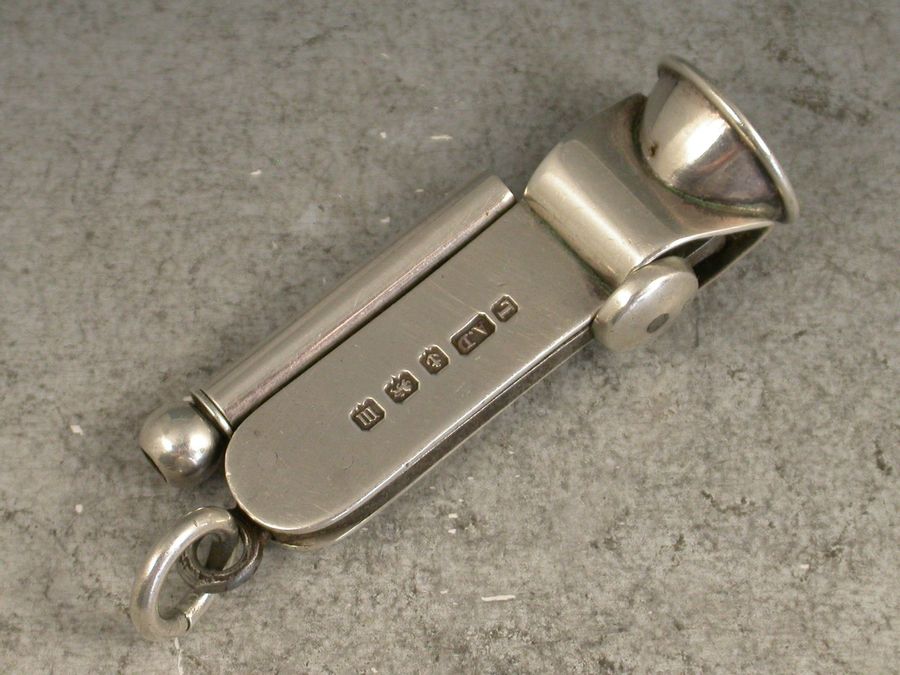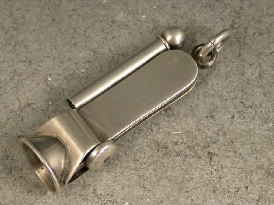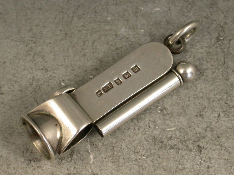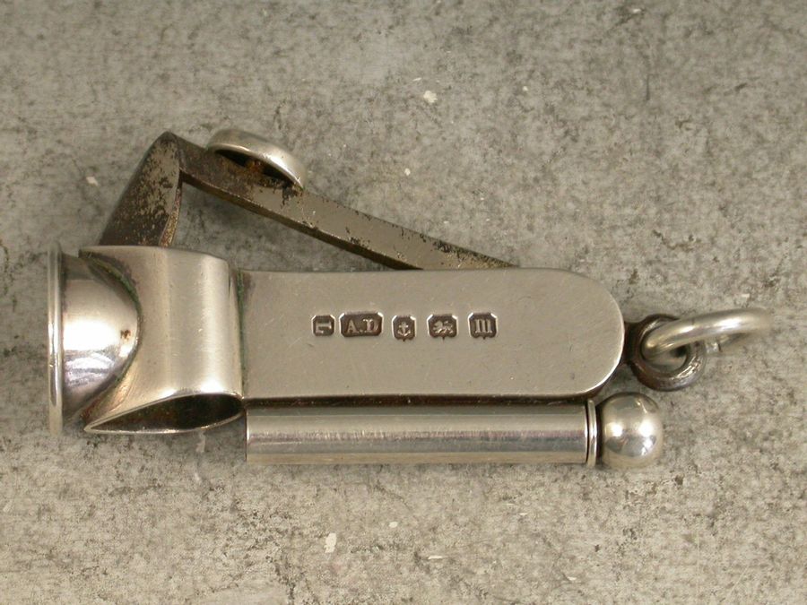A rare early 20th century silver combined Cigar Cutter and Telescopic Pencil with attached suspension ring, the telescopic pencil with sliding mechanism.
