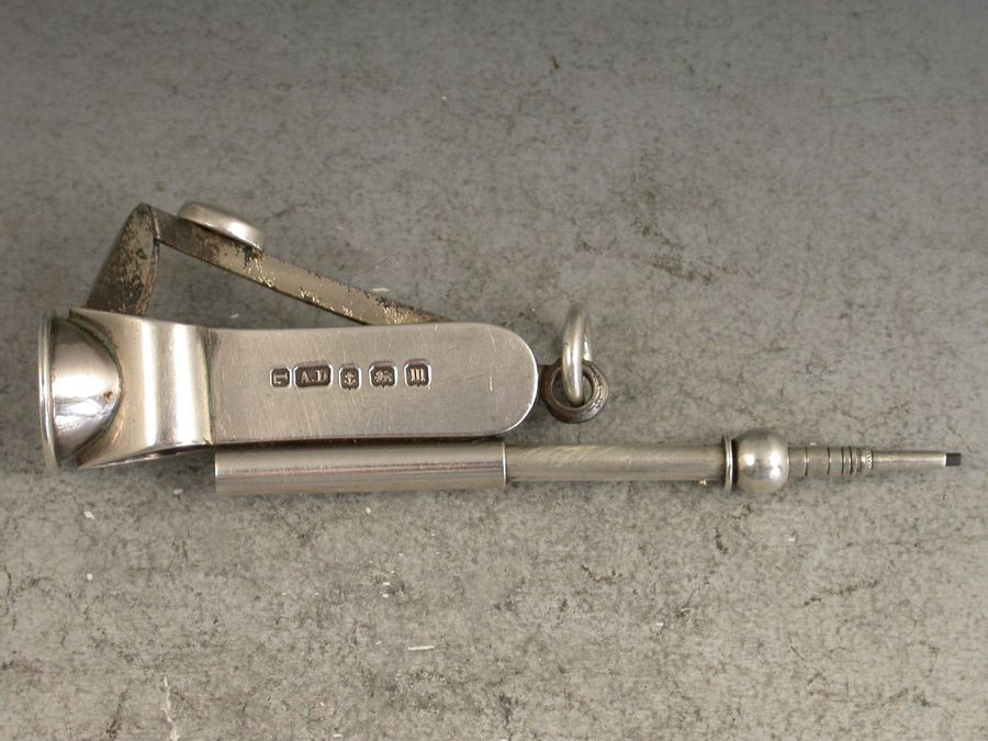 George V Antique Silver Combined Cigar Cutter / Telescopic Pencil