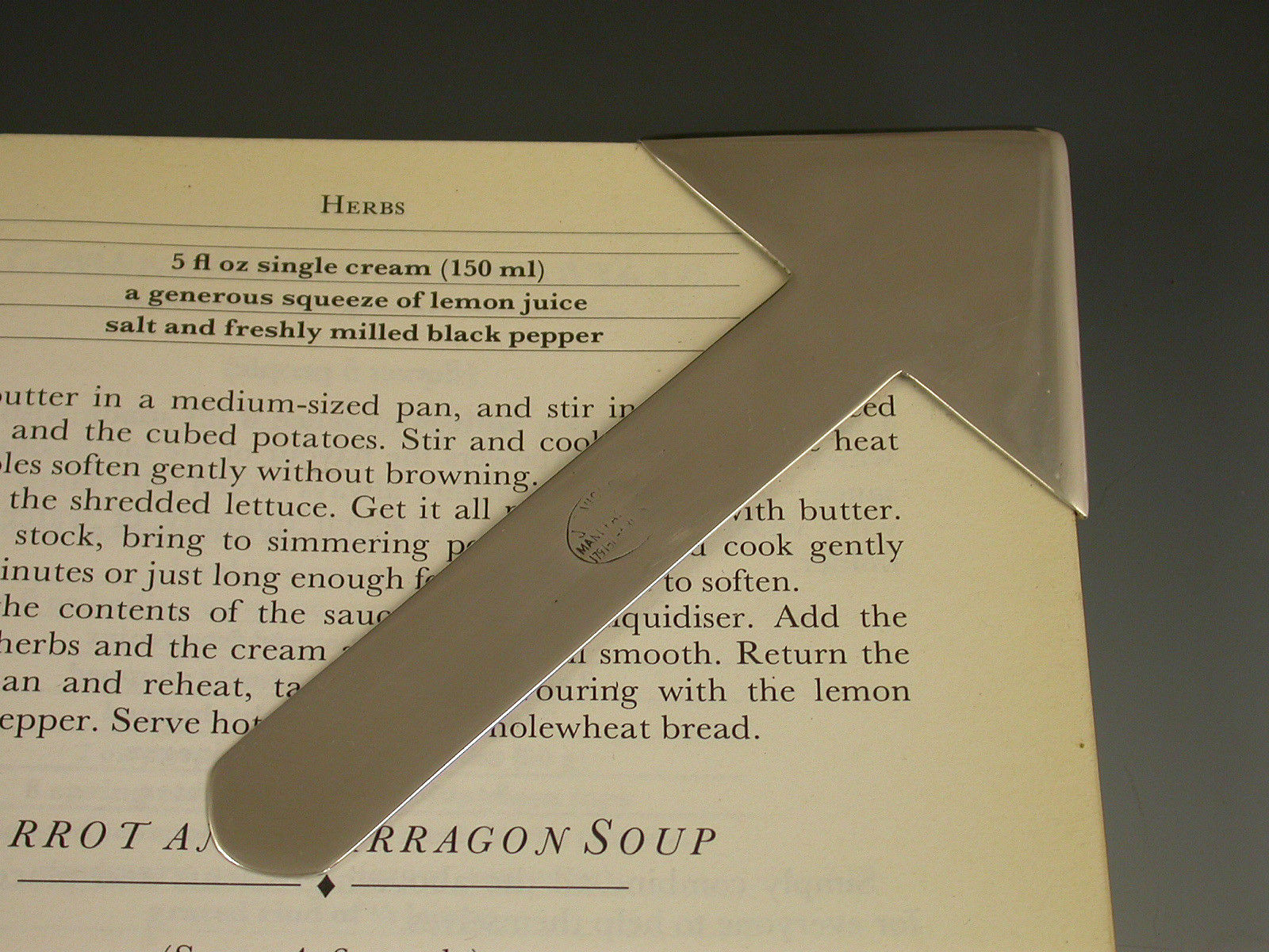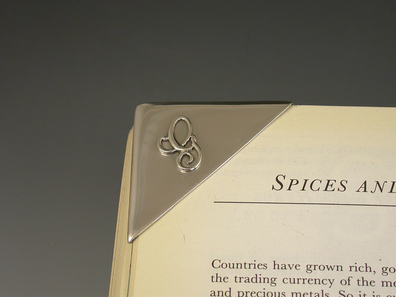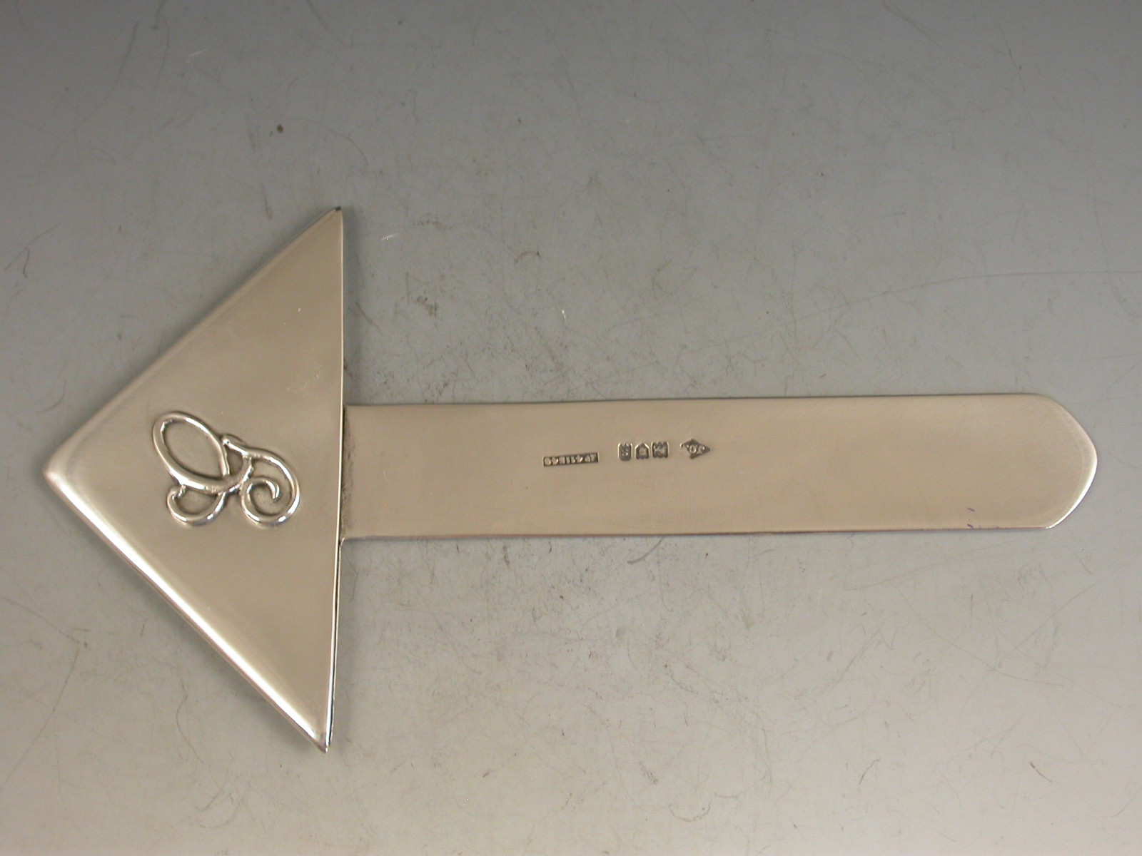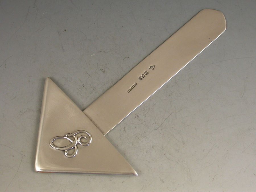 A good quality early 20th century silver Bookmark, the triangular hollow cover to fit over the corner of a page and applied with a script letter 'G'.