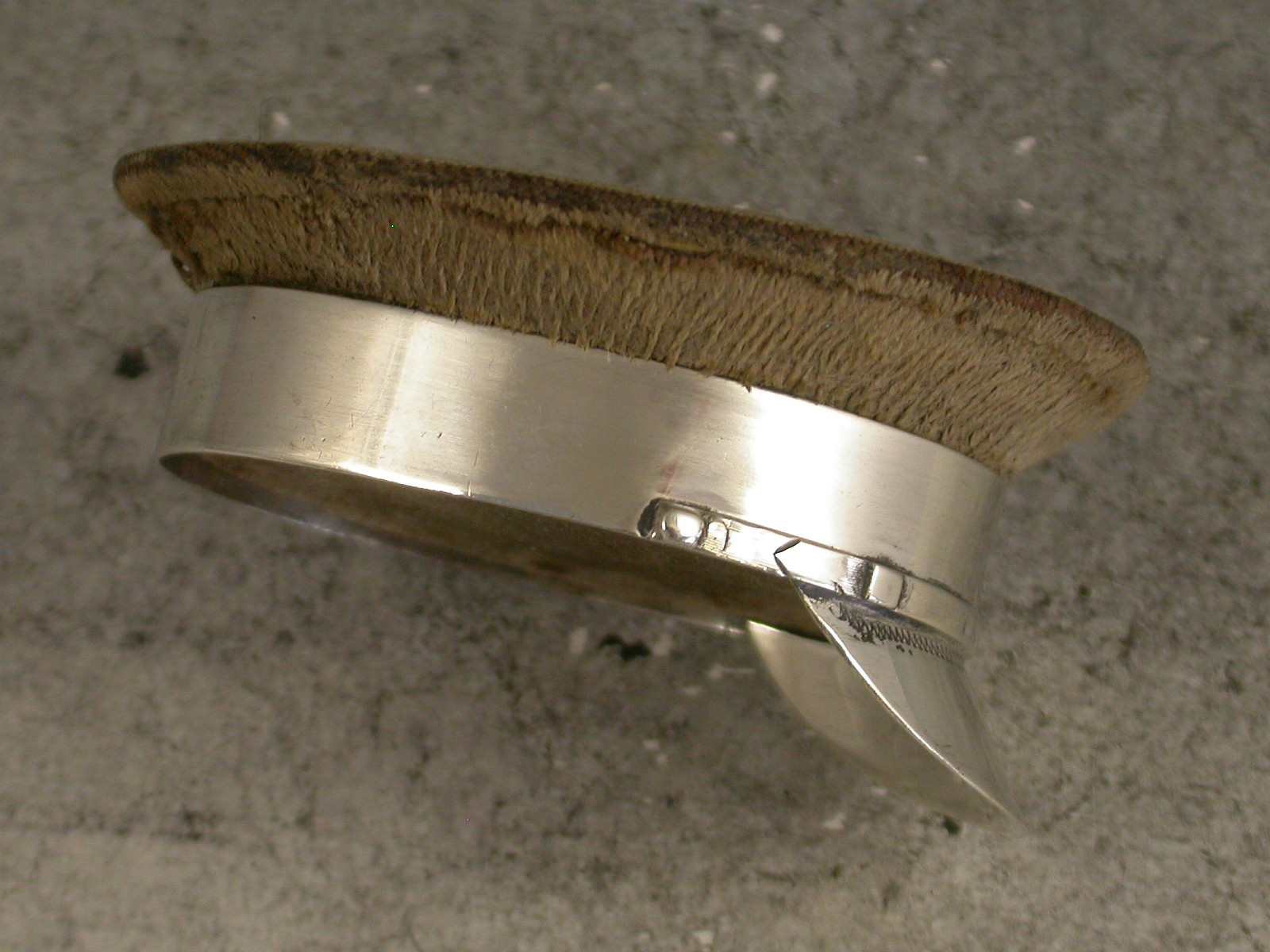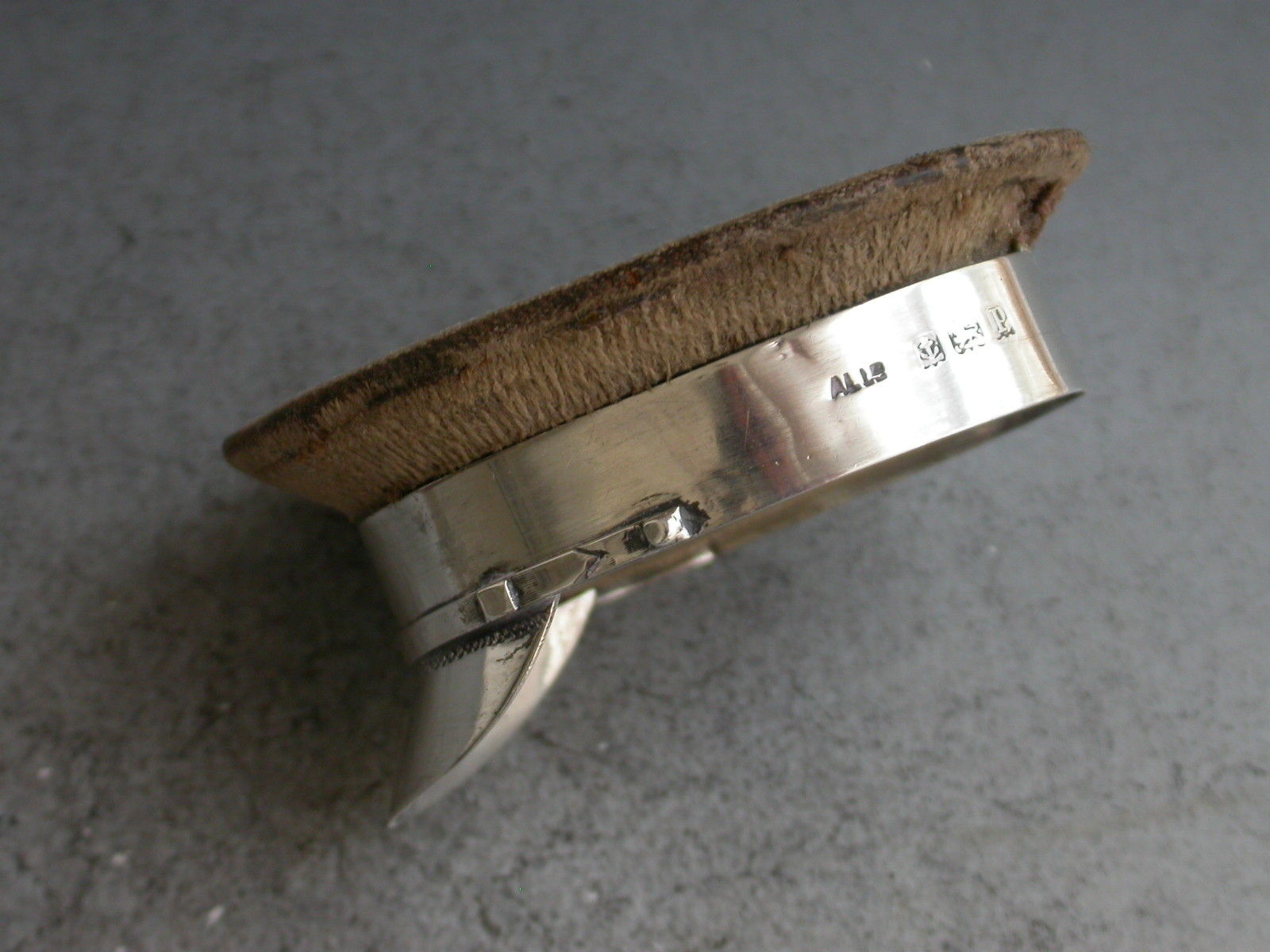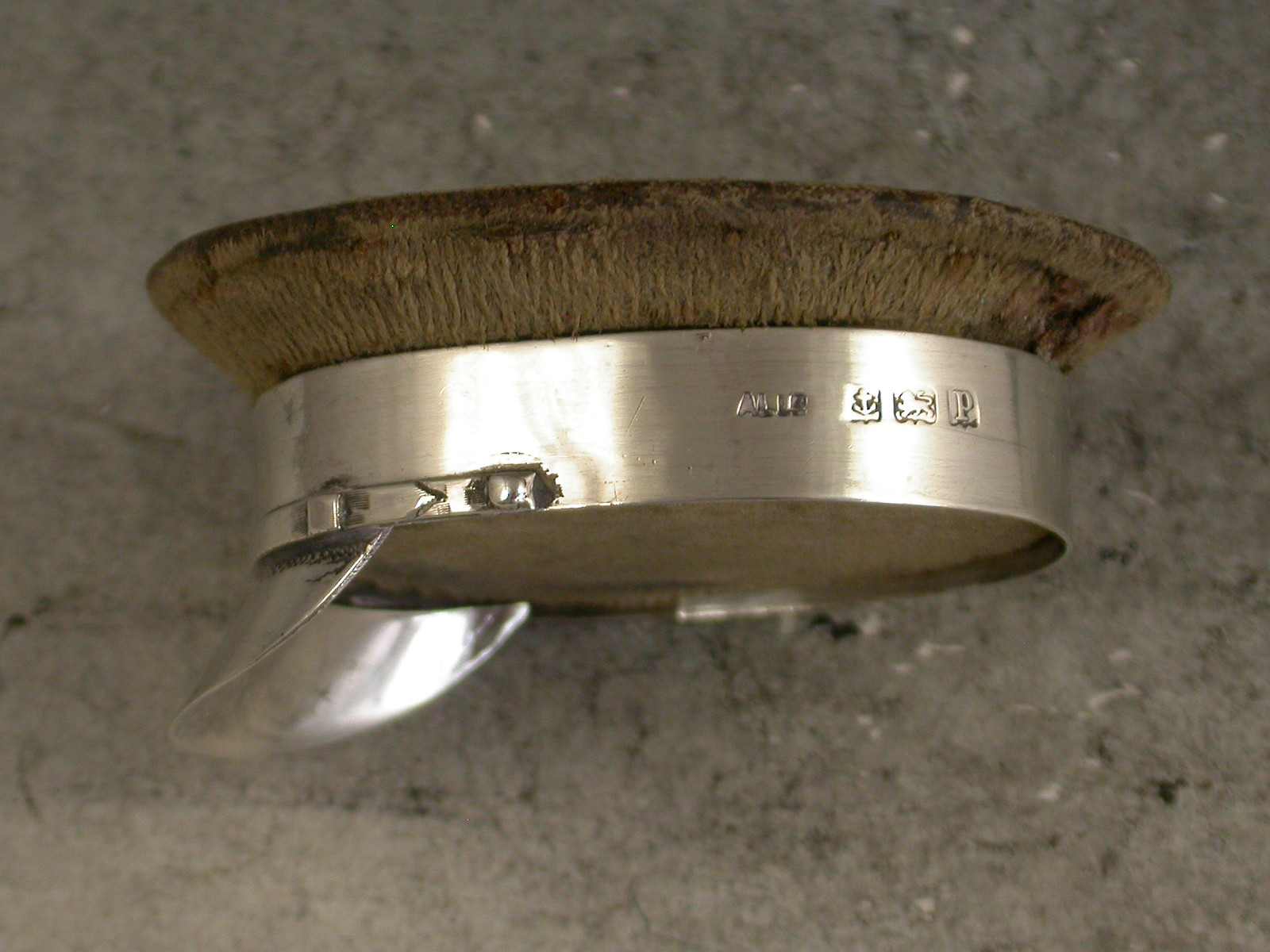 A fine and rare early 20th century silver mounted Pin Cushion made in the form of a World War 1 Army Officers Hat, the wooden frame covered in brown velvet to simulate khaki.