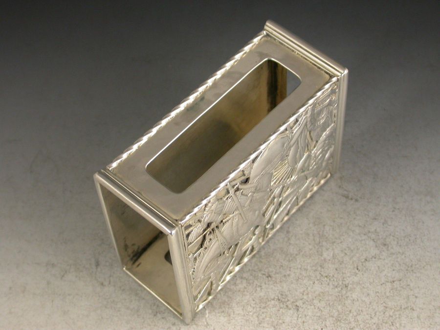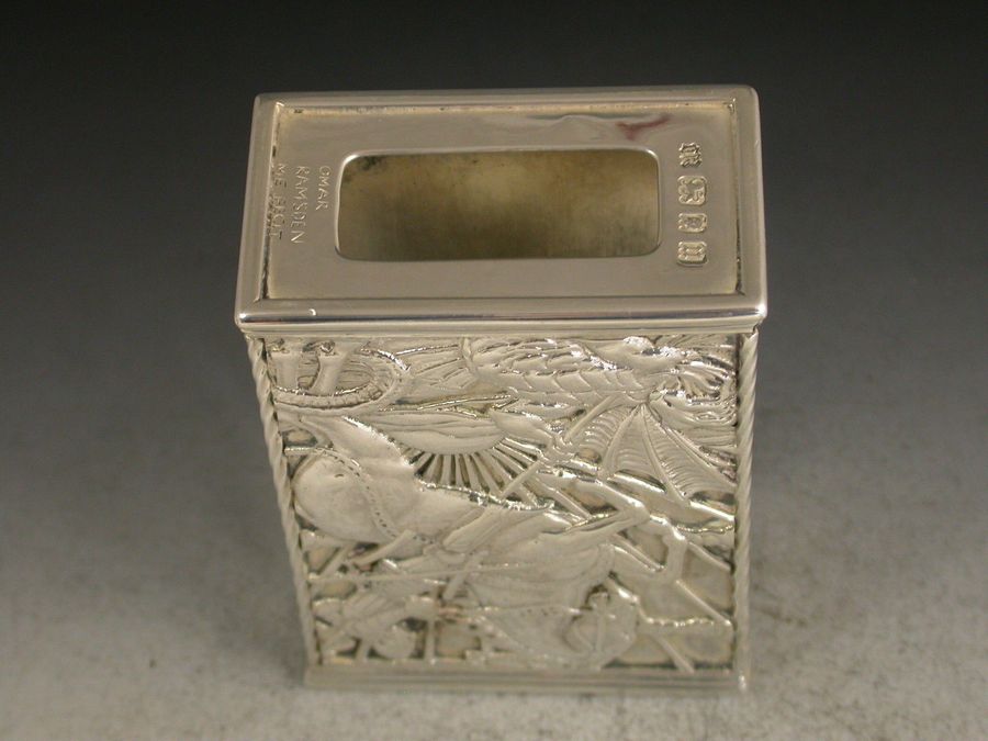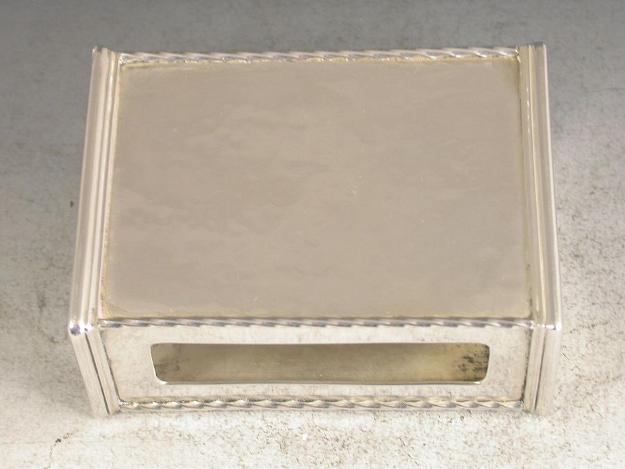 A fine quality and large sized George V silver Match Box Cover in the Arts & Crafts style, of rectangular form with rope work and reeded borders, the face with cut-out and applied scene depicting St George and The Dragon.