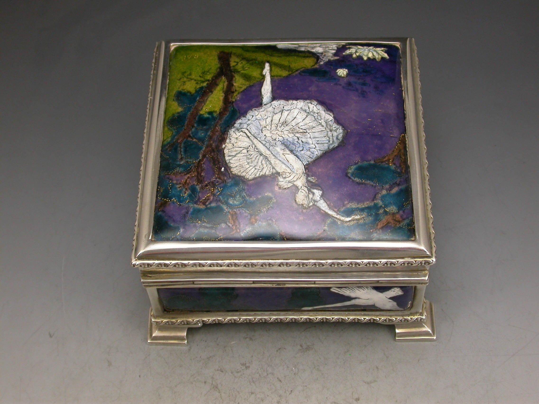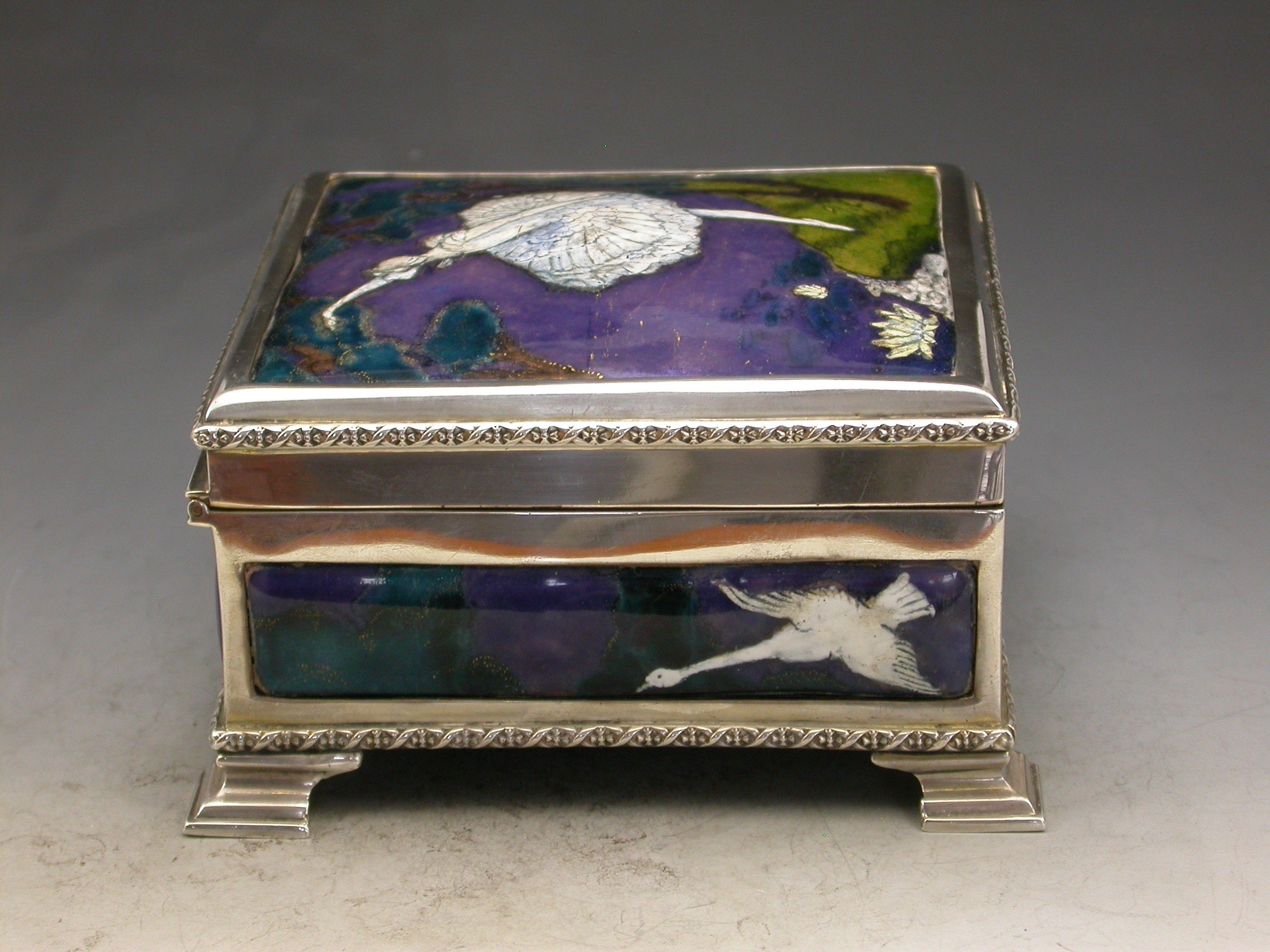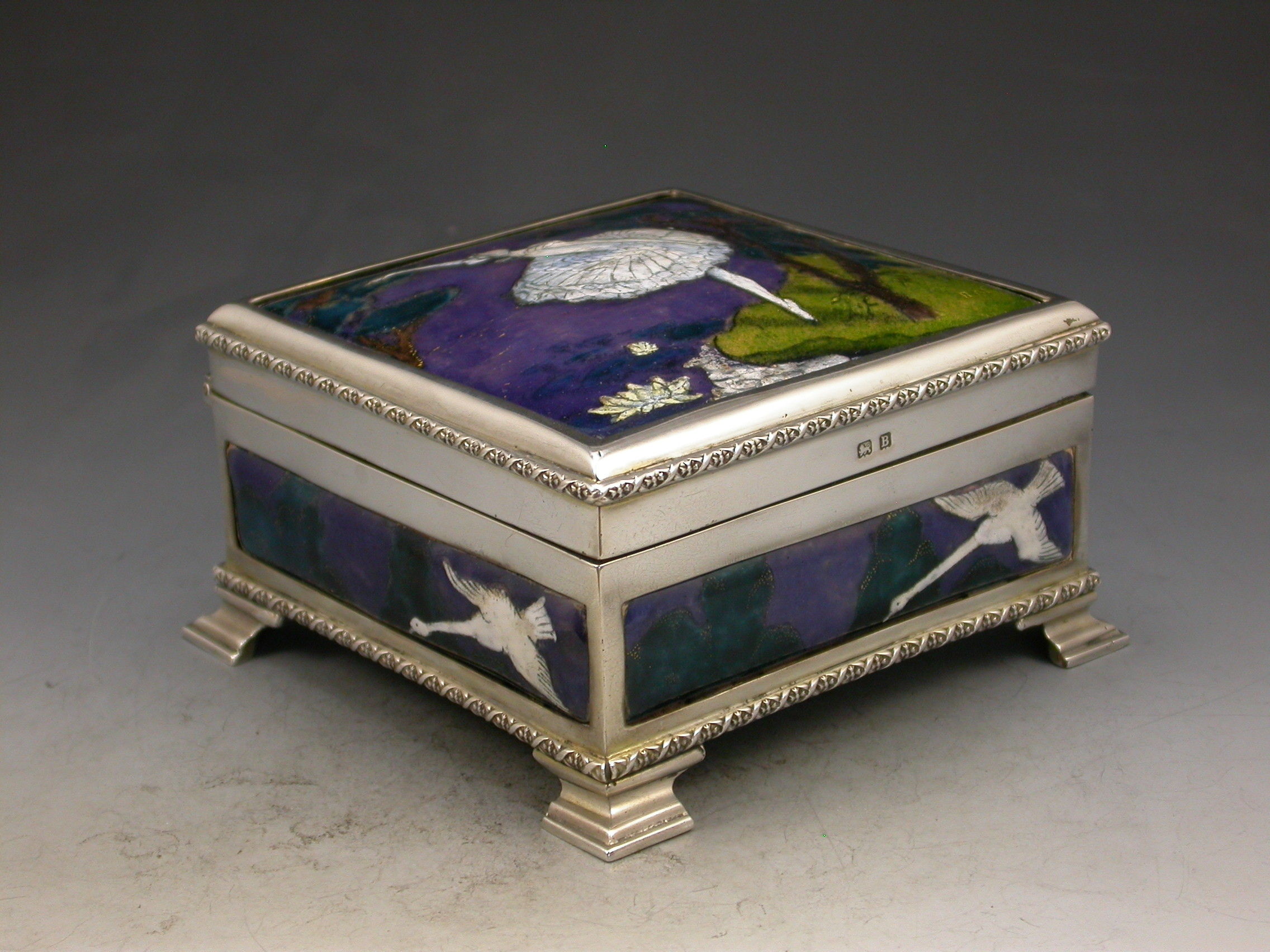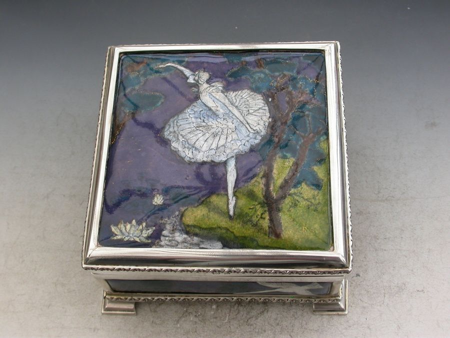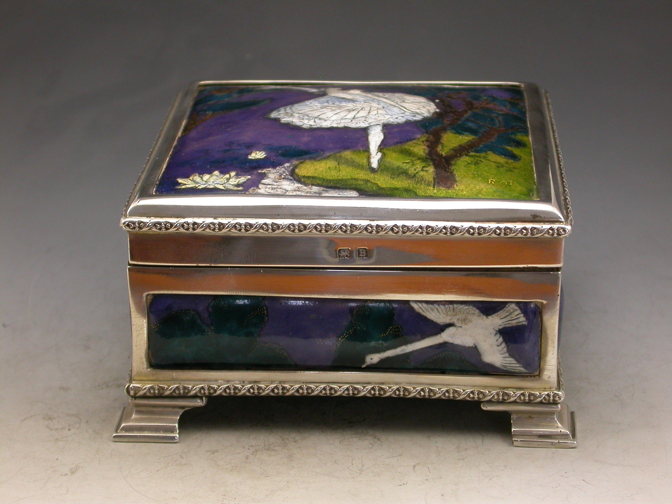 George V Arts & Crafts Style Silver & Enamel Cigarette Box - Ballerina & Swans