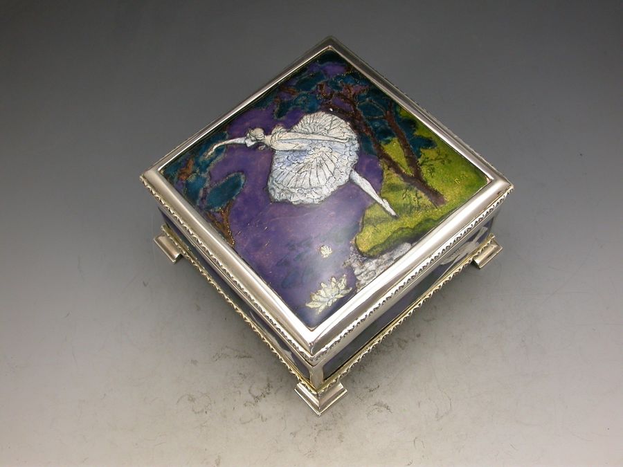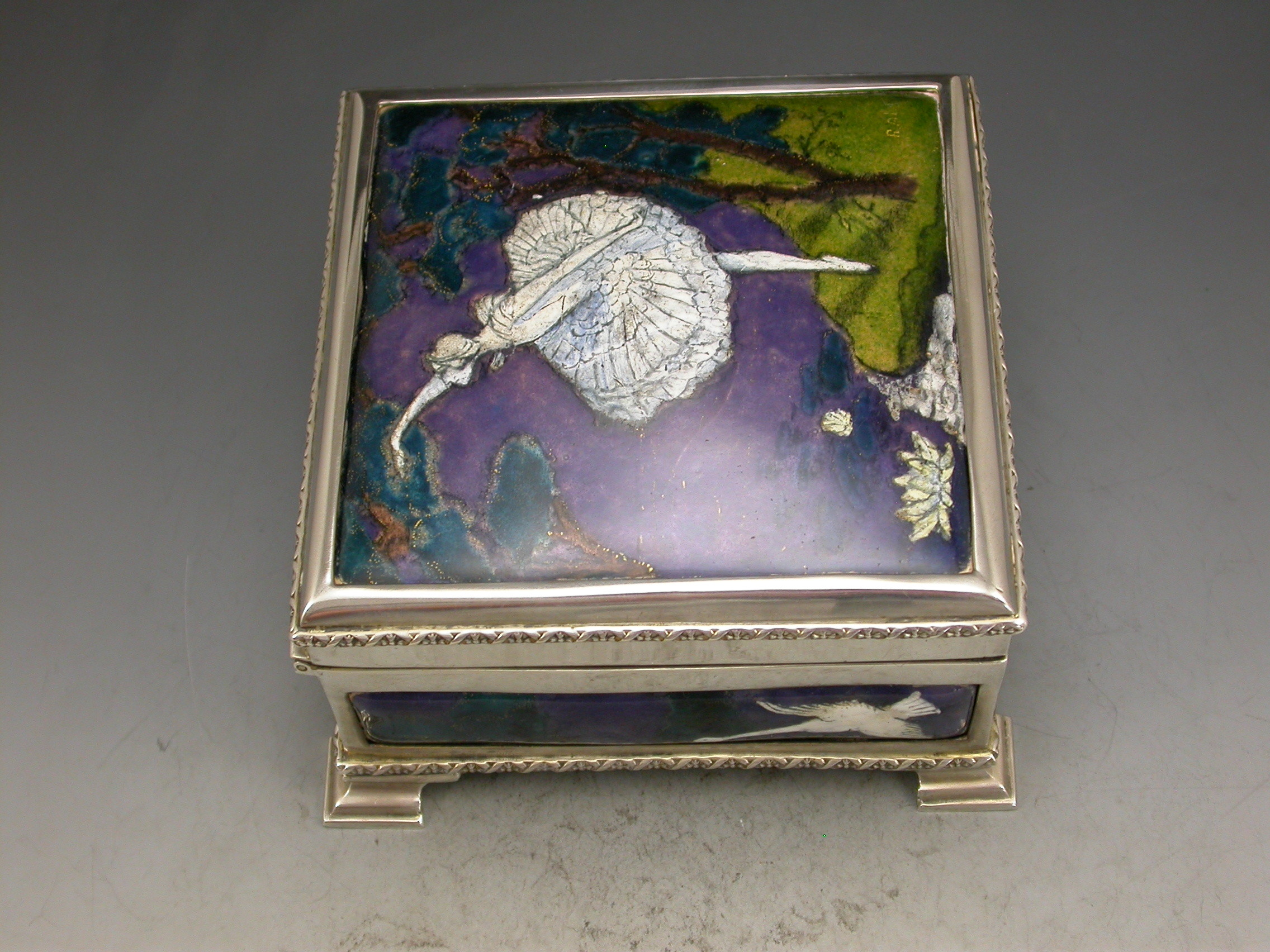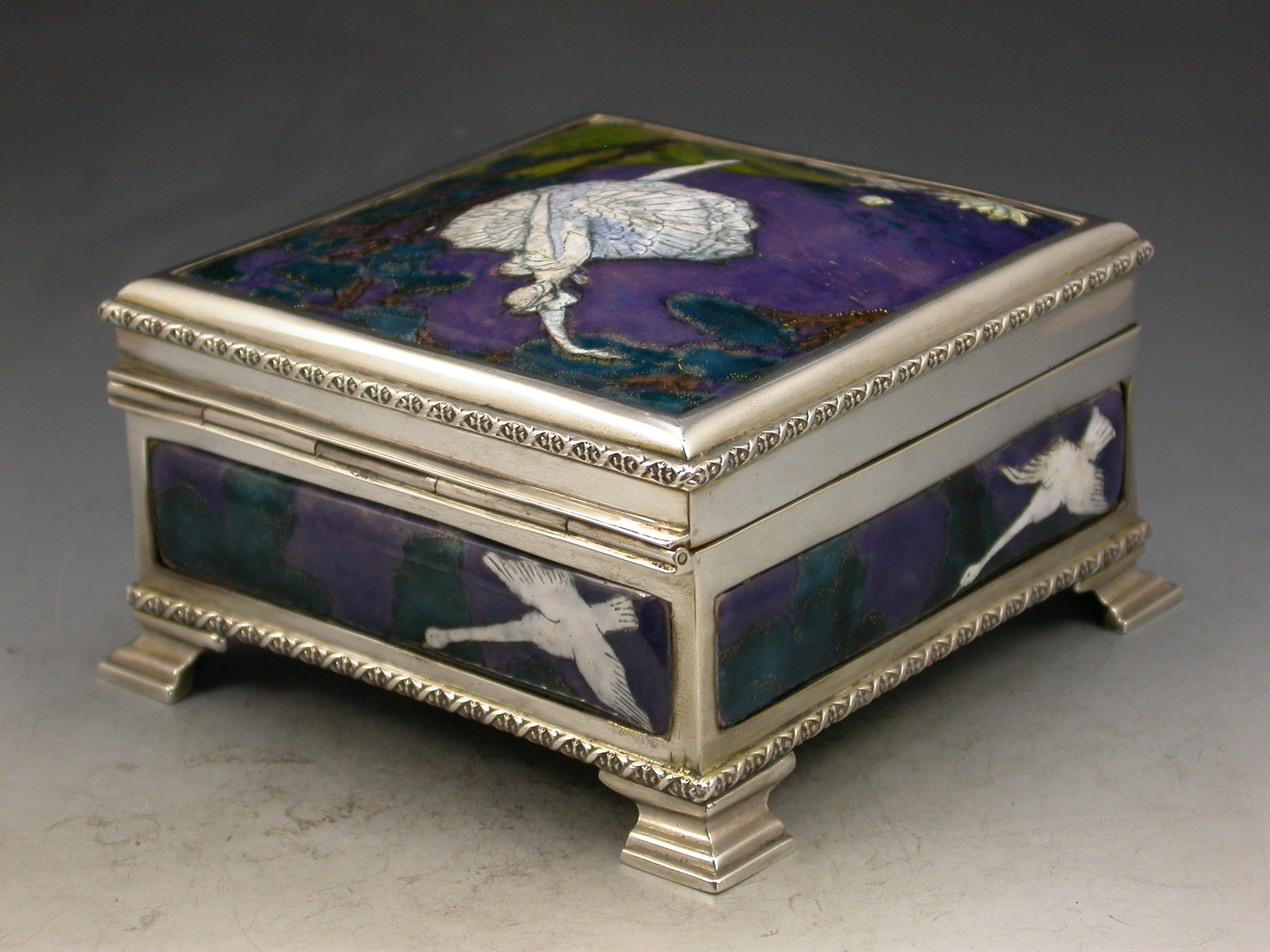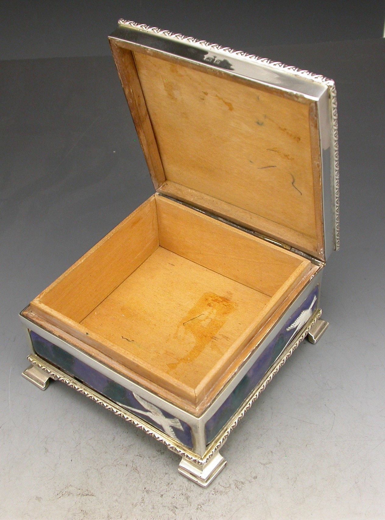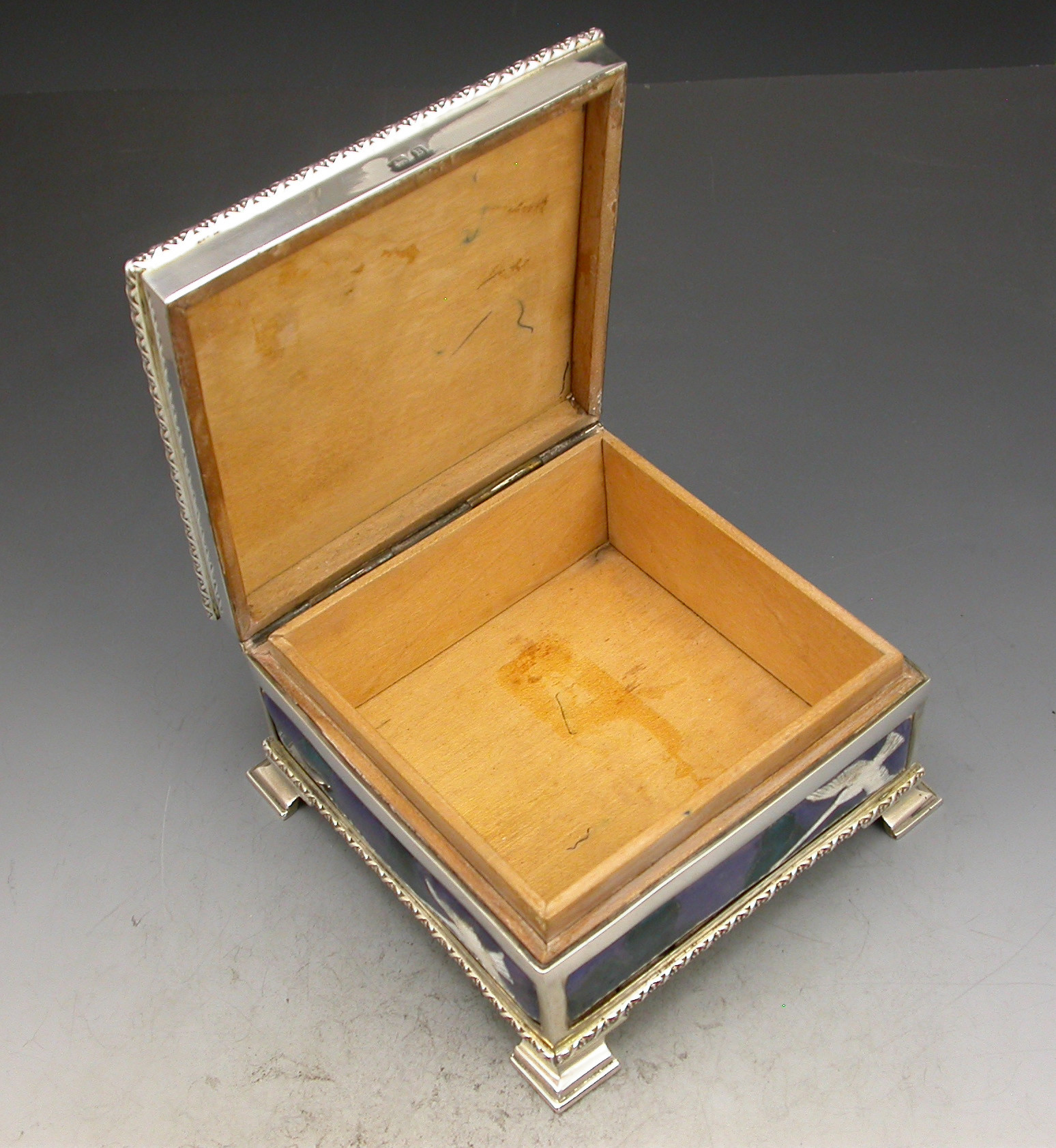 George V Arts & Crafts Style Silver & Enamel Cigarette Box - Ballerina & Swans