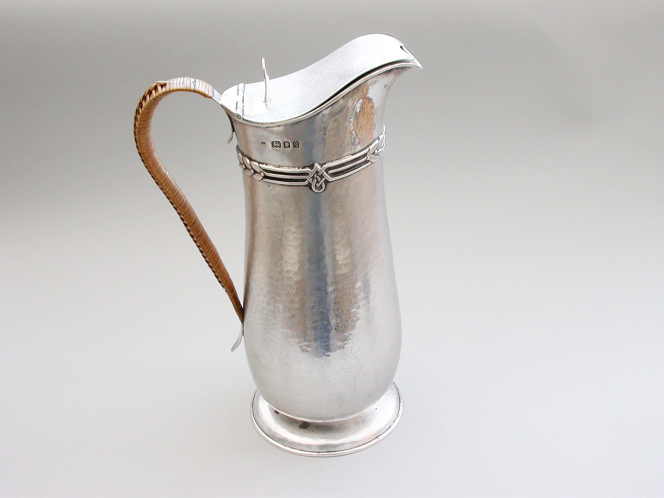 George V Arts & Crafts Hammered Silver Hot Water Jug