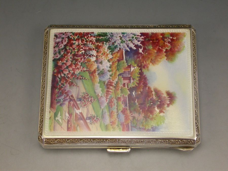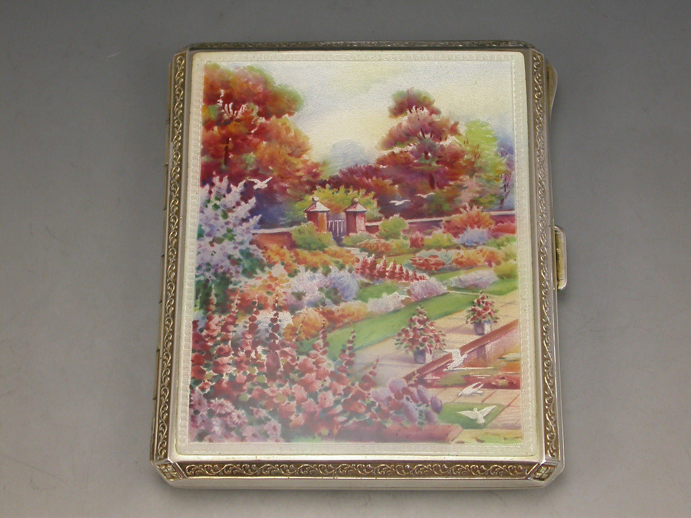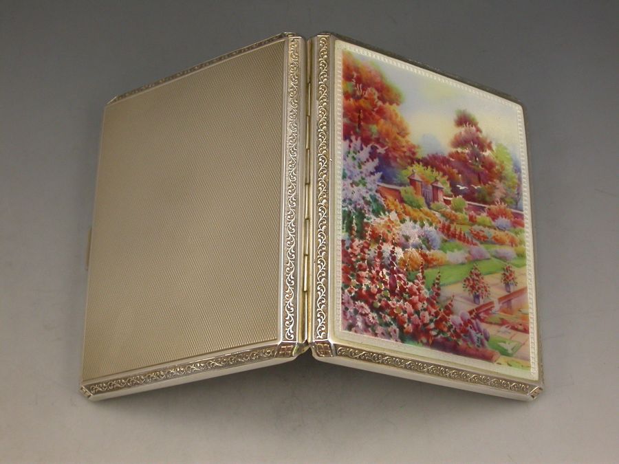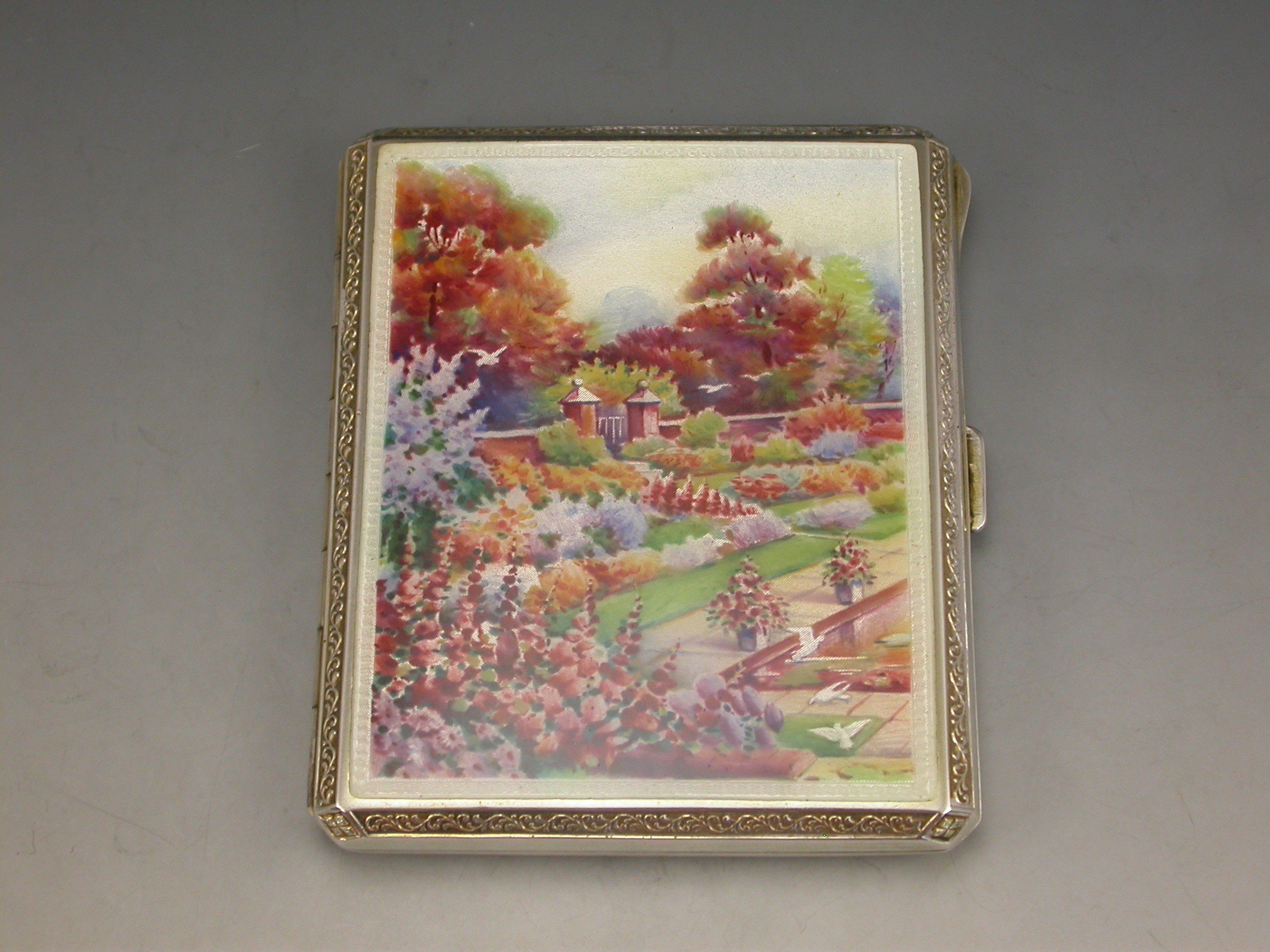 George V Continental Silver & Enamel Cigarette Case - Garden Scene