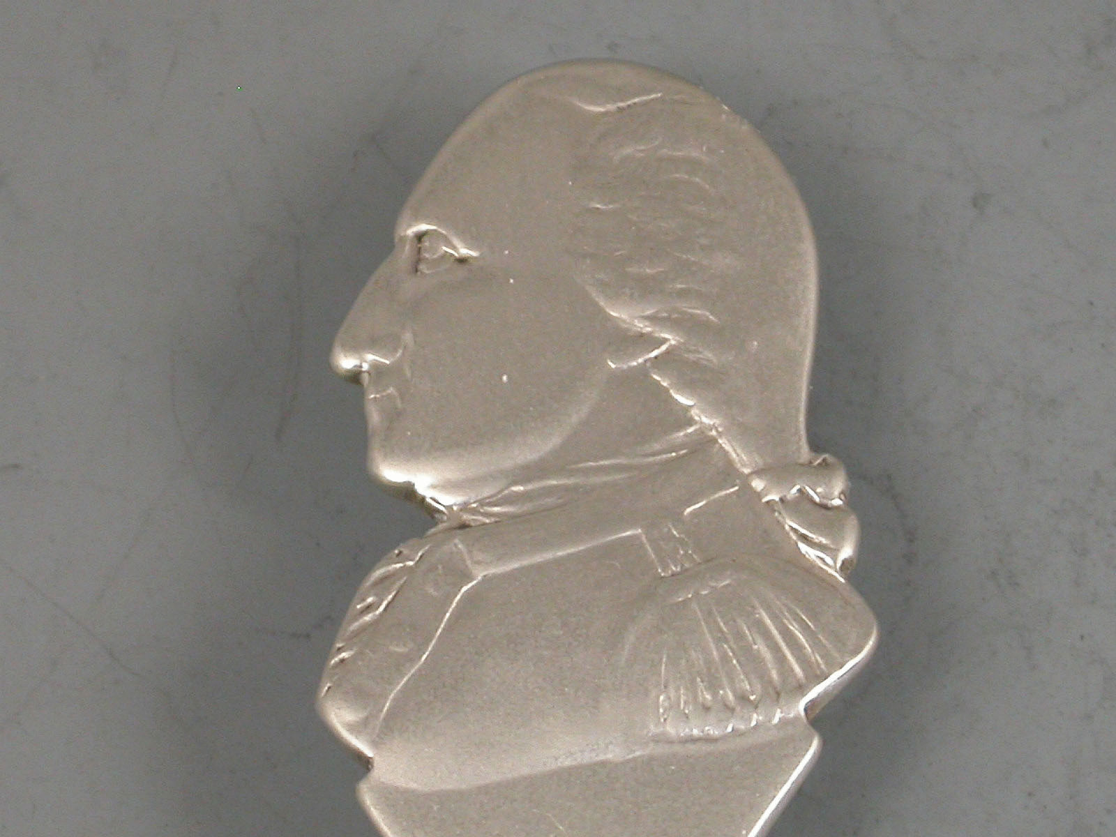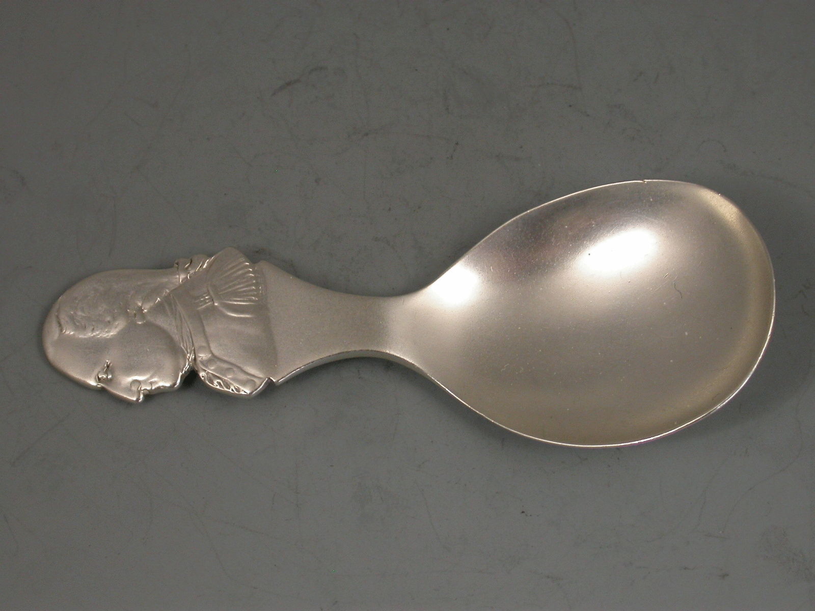 A George V Commemorative silver Caddy Spoon, the handle formed as a bust of the Duke of Wellington, with plain oval bowl.