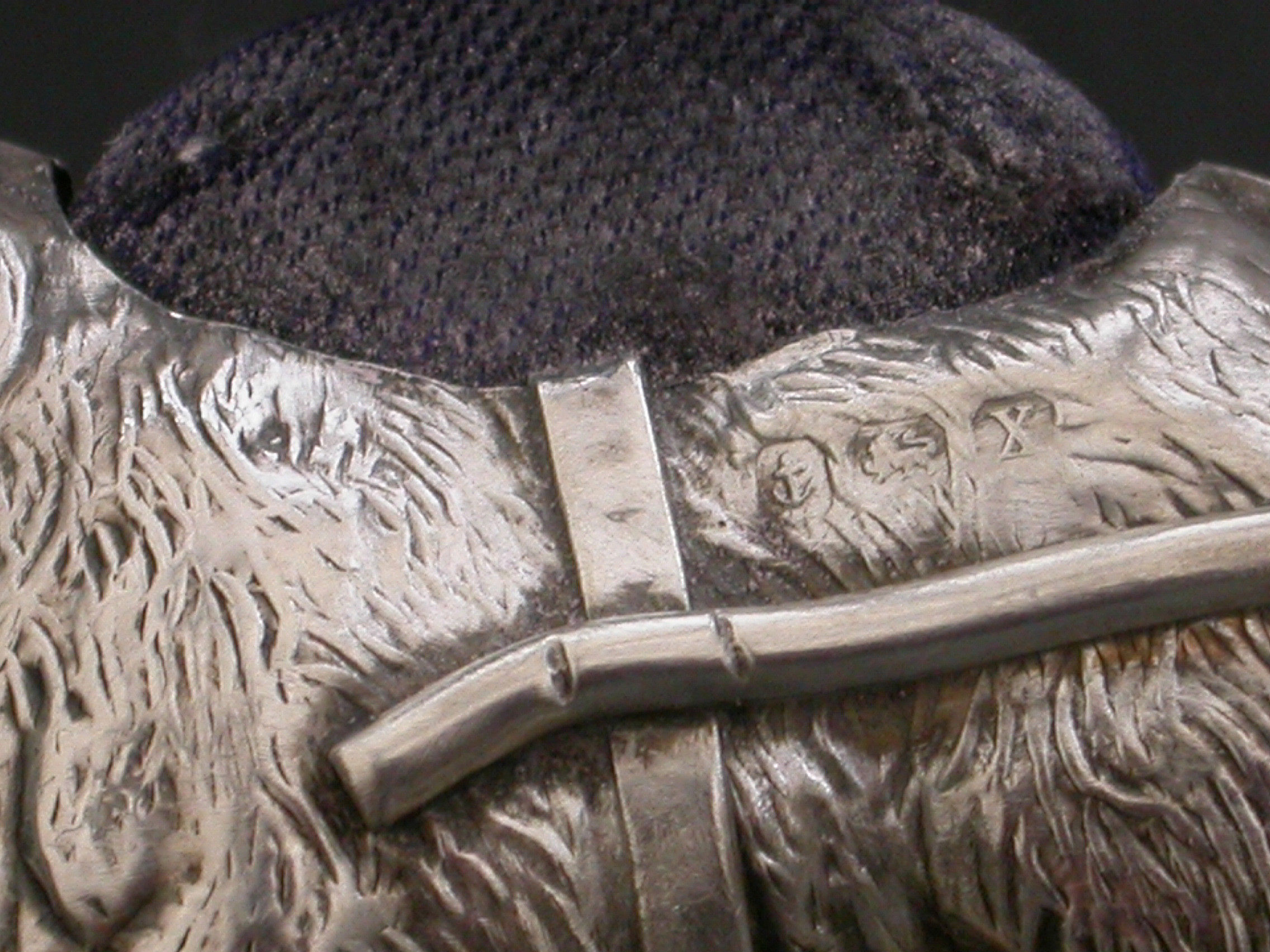 George V Novelty Silver Dog Pulling a Cart Pin Cushion