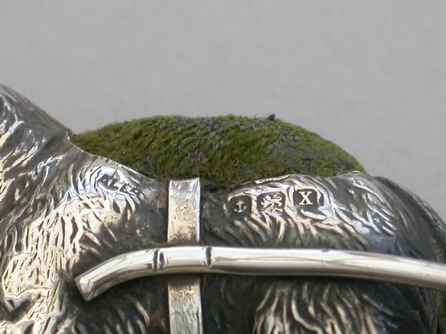 George V Novelty Silver Dog Pulling a Cart Pin Cushion