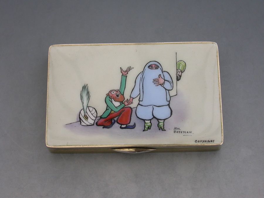 George V Silver & Enamel H.M.Bateman Cartoon Snuff Box