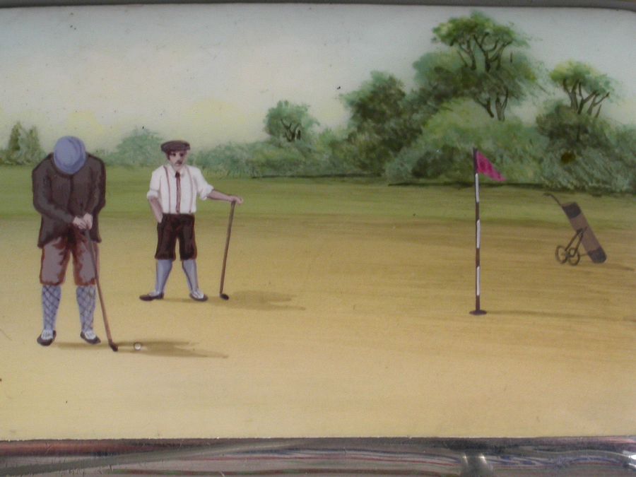 George V Silver & Enamel Golfing Scene Cigarette Case