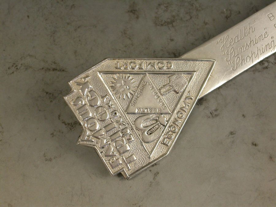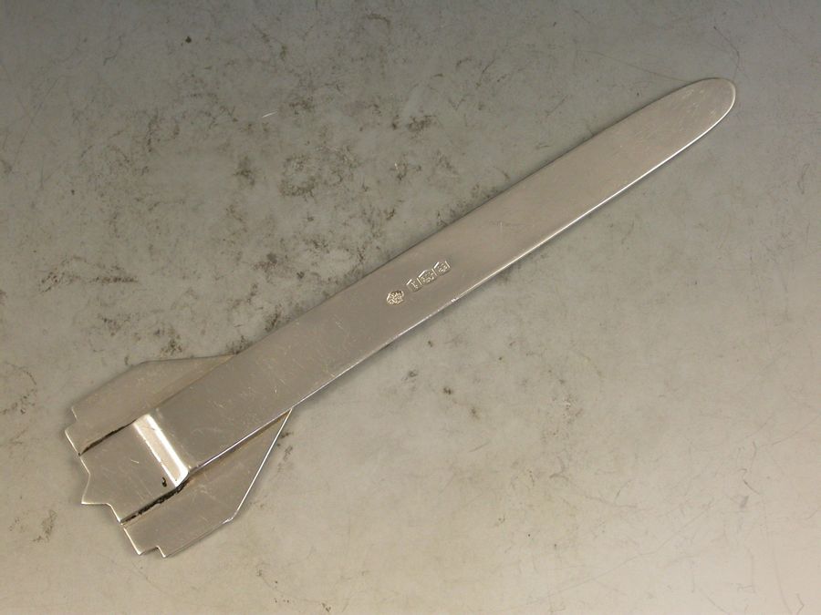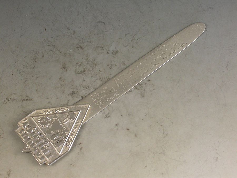A unusual George V silver Bookmark made to advertise three hotels in Bath, Brighton and London, the terminal stamped ""A Famous Trilogy, Luxury, Economy and Comfort"".