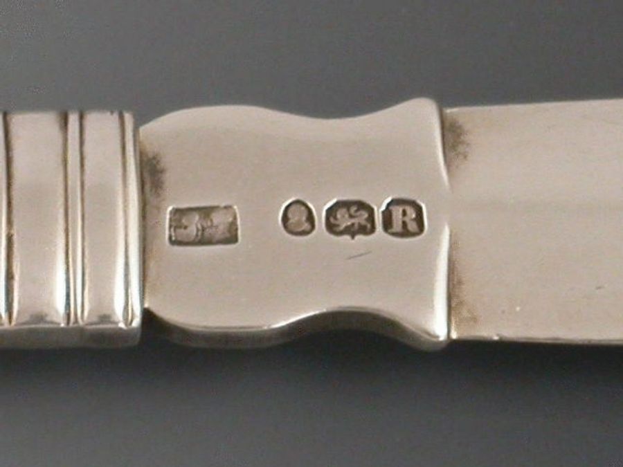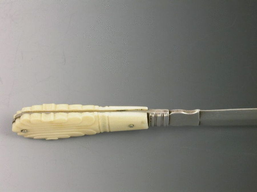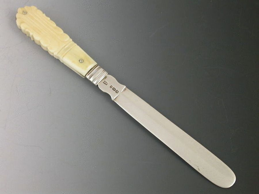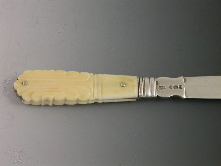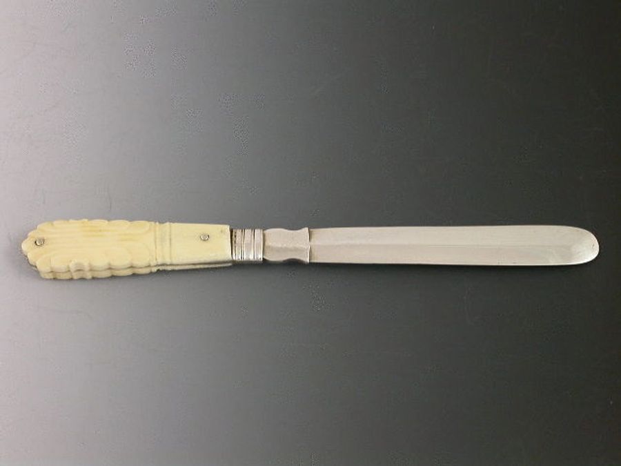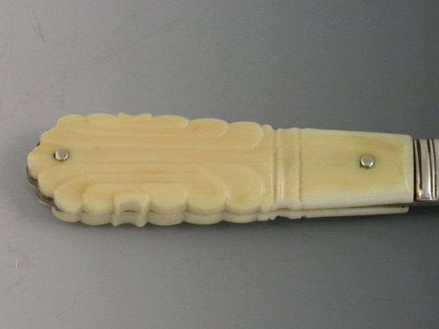 A rare George III silver Tongue Depressor with carved ivory or bone handle, bevelled silver blade.