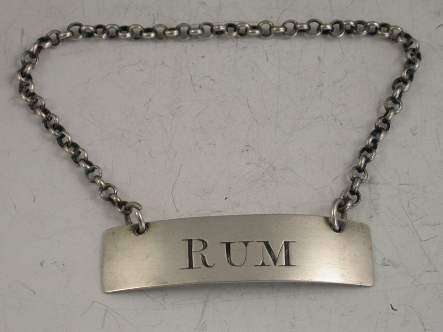 A Georgian silver Wine Label of plain narrow rectangular form, incised for Rum, the R engraved larger than the other two letters.
