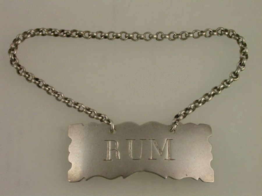 An unusual and untraced Georgian silver Wine Label of shaped rectangular form with serrated border, incised for RUM.